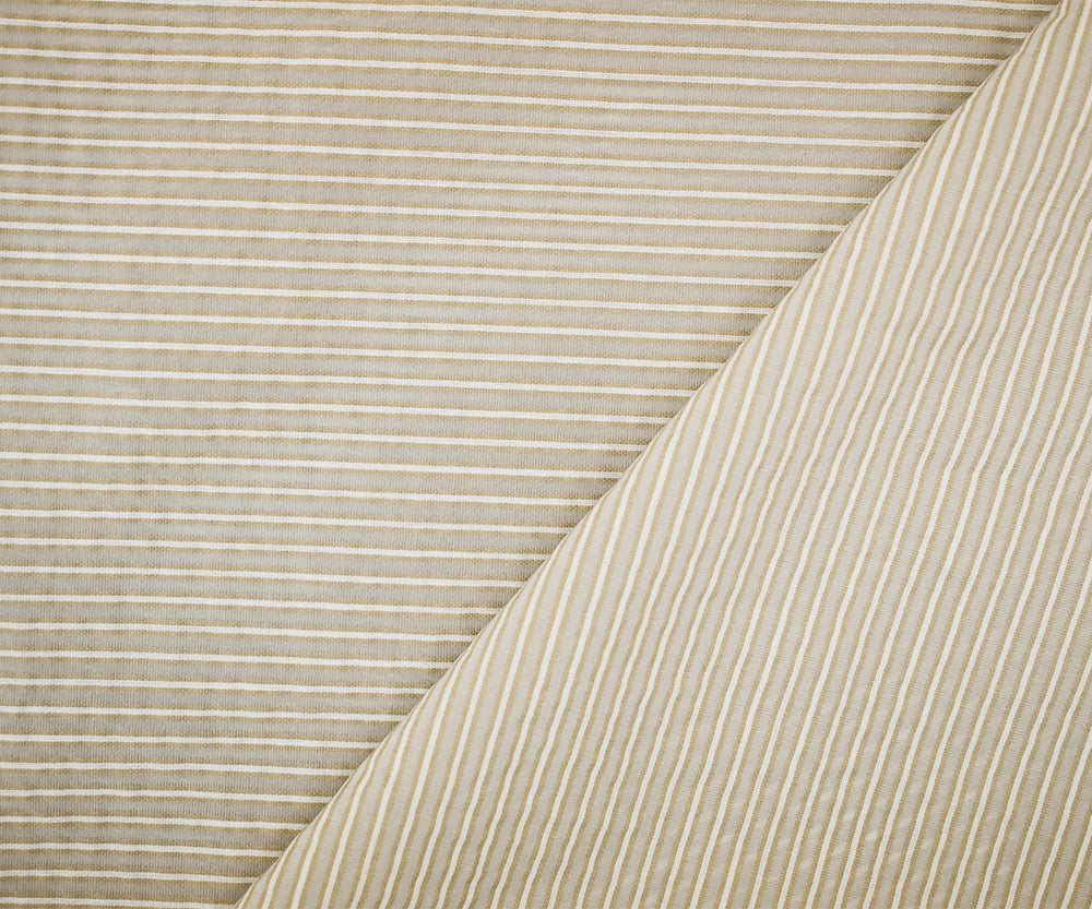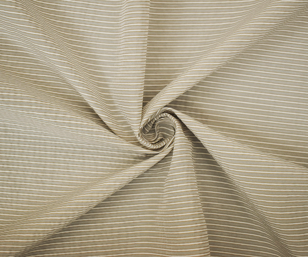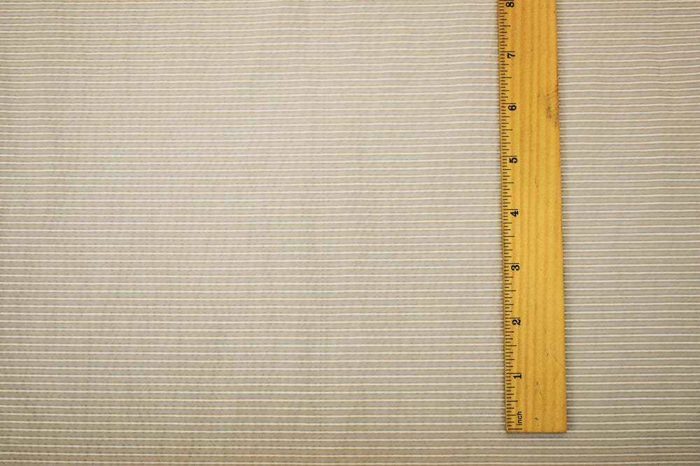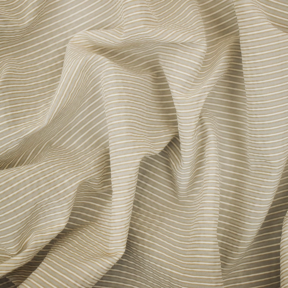 Taupe Beige-White Striped Semi-Sheer Poly Rayon Woven Fabric
