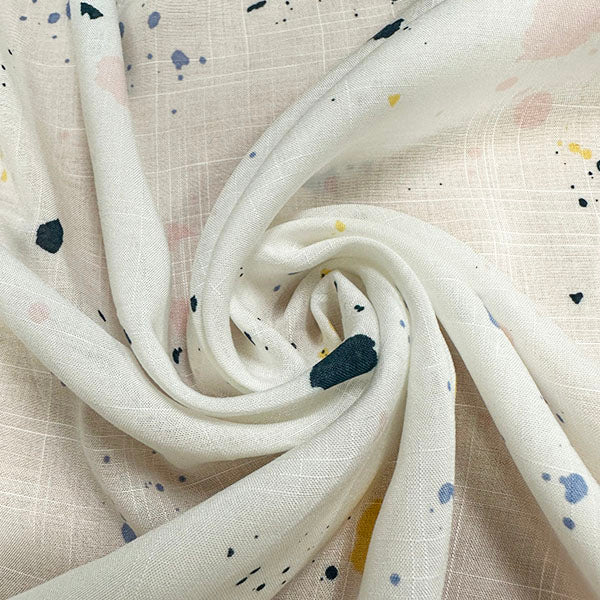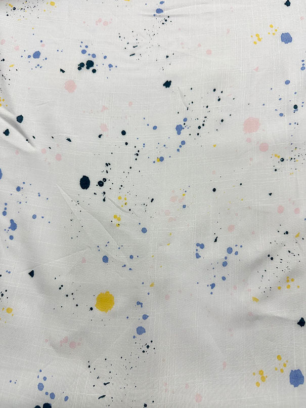 White Splatter Print Rayon Lawn Fabric