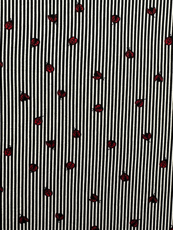 Black Stripe Ladybug Print Double Brushed Jersey Knit Fabric
