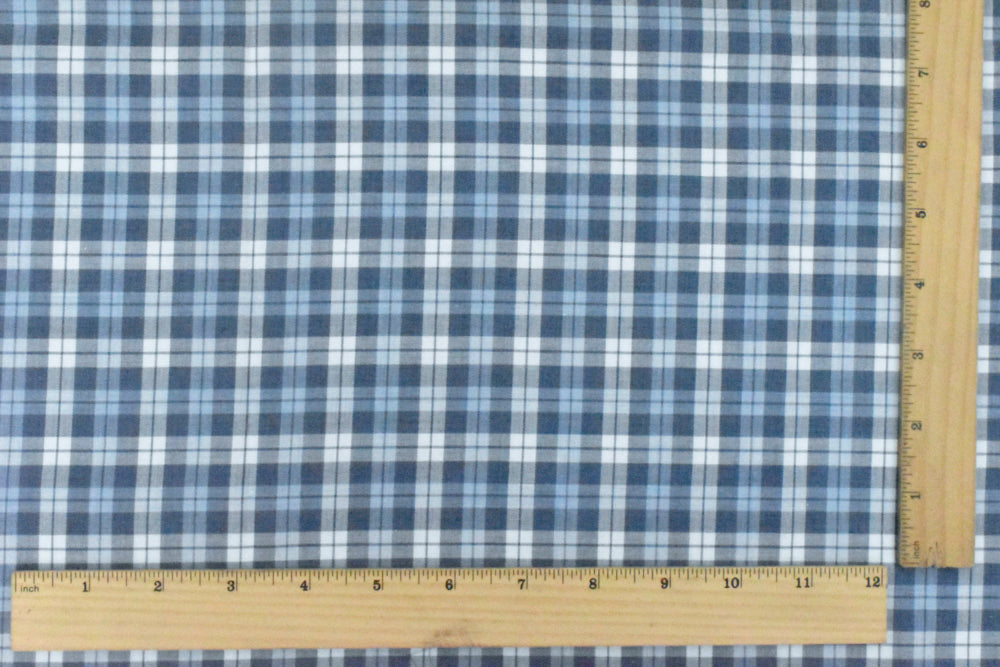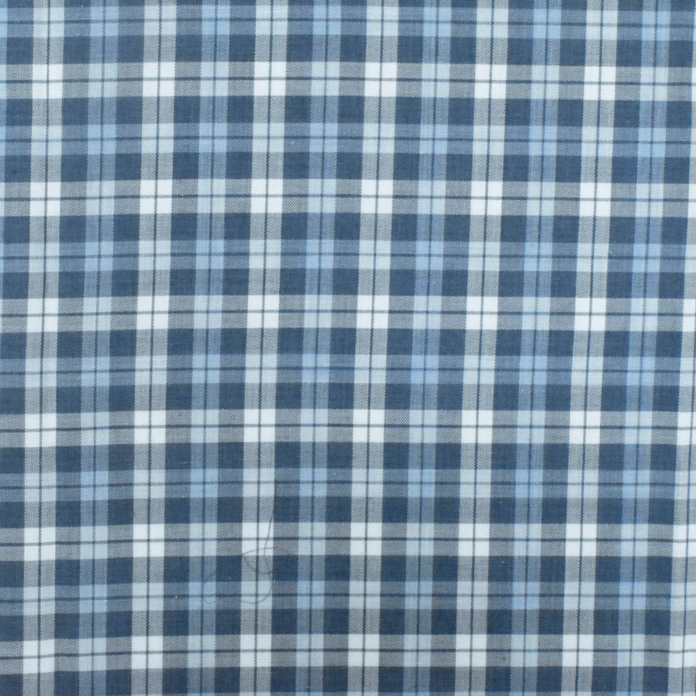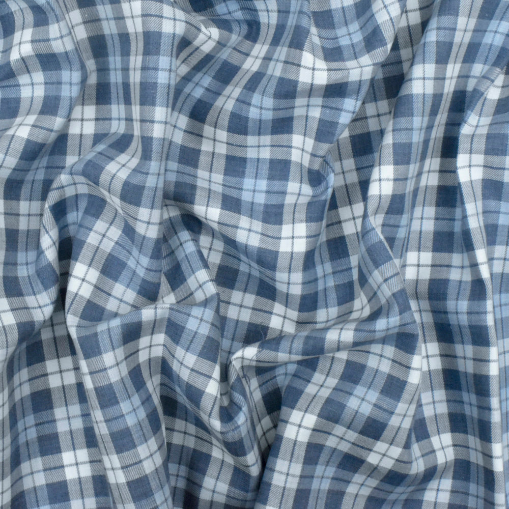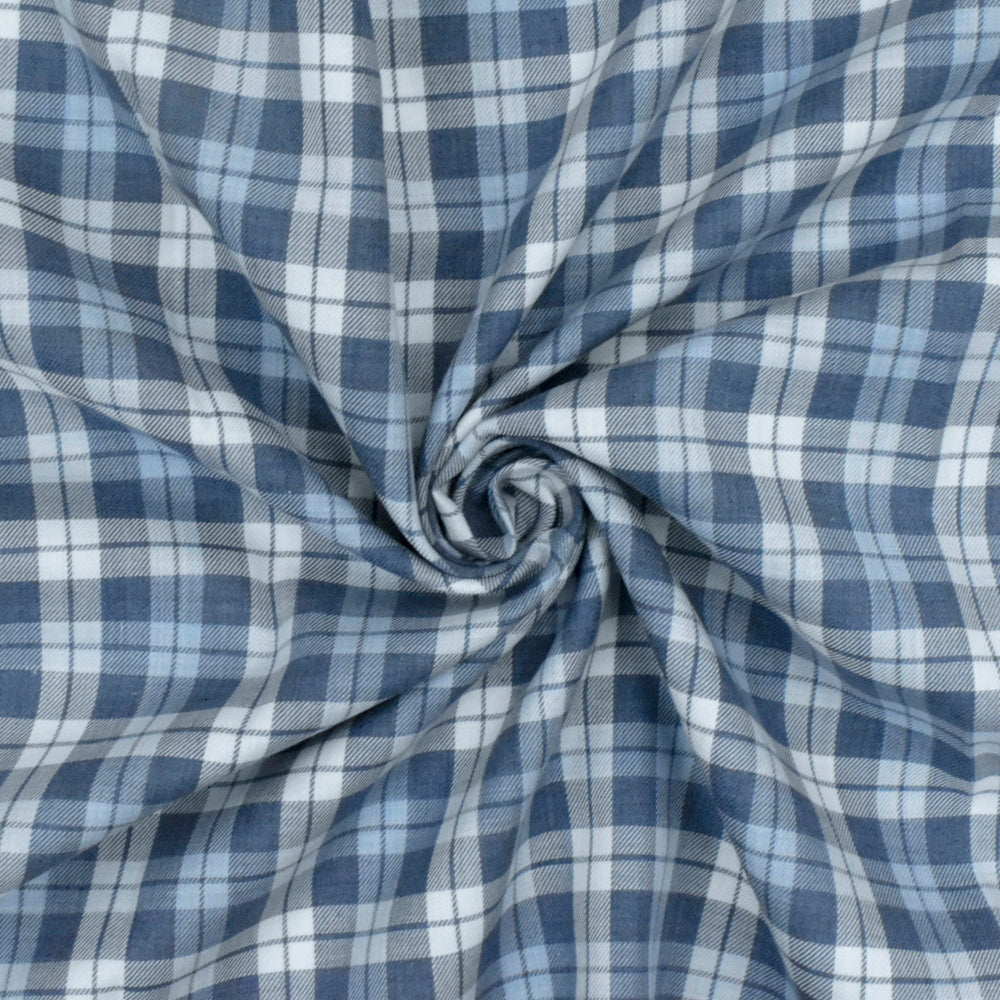 Blue-Navy-White Plaid Cotton Twill Woven Fabric