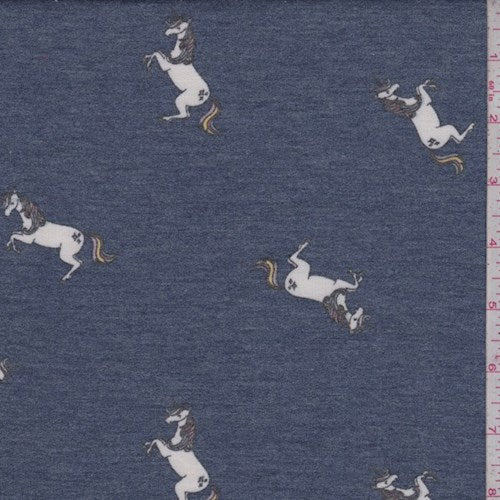 Dark Blue Leaping Unicorn Brushed French Terry Knit Fabric