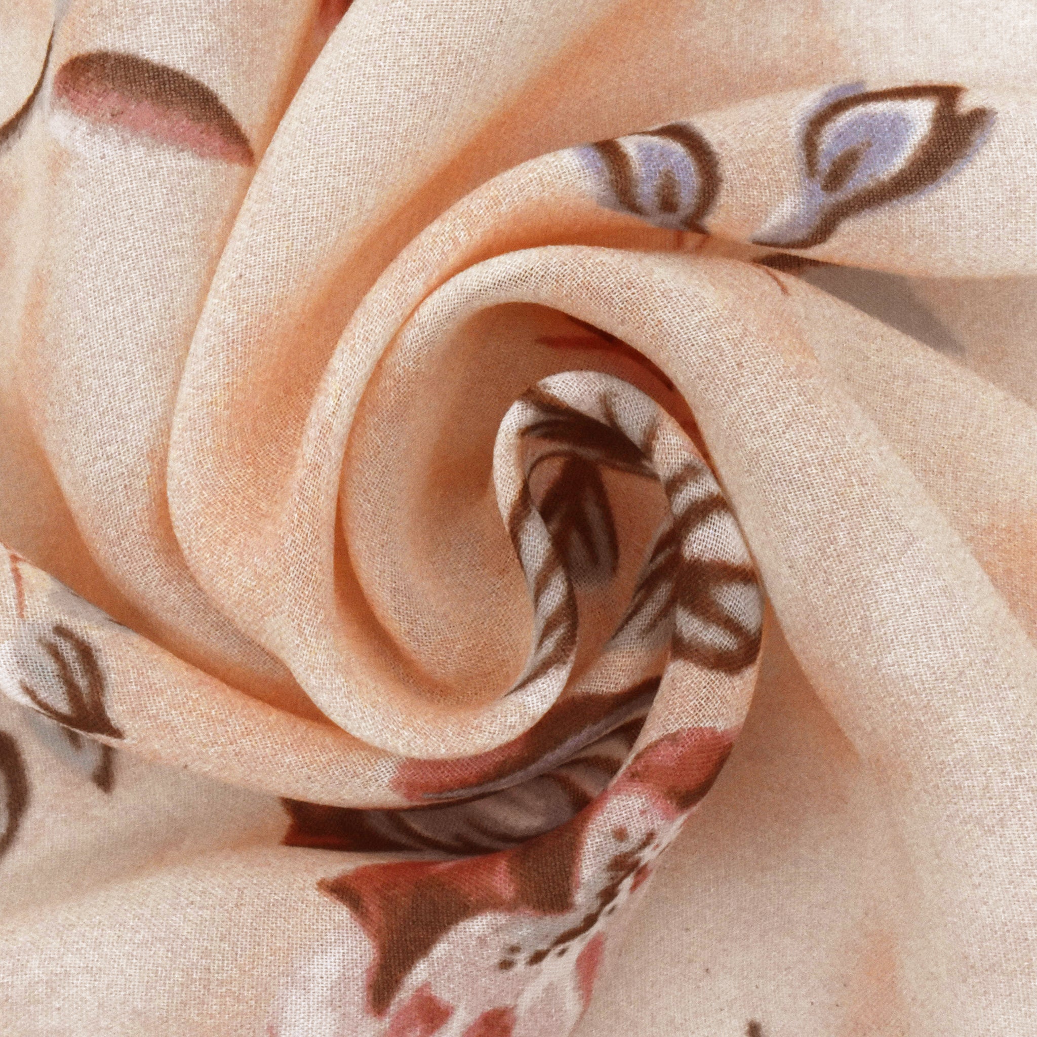 Peach Orange-Multi Floral Printed Silk Chiffon Fabric