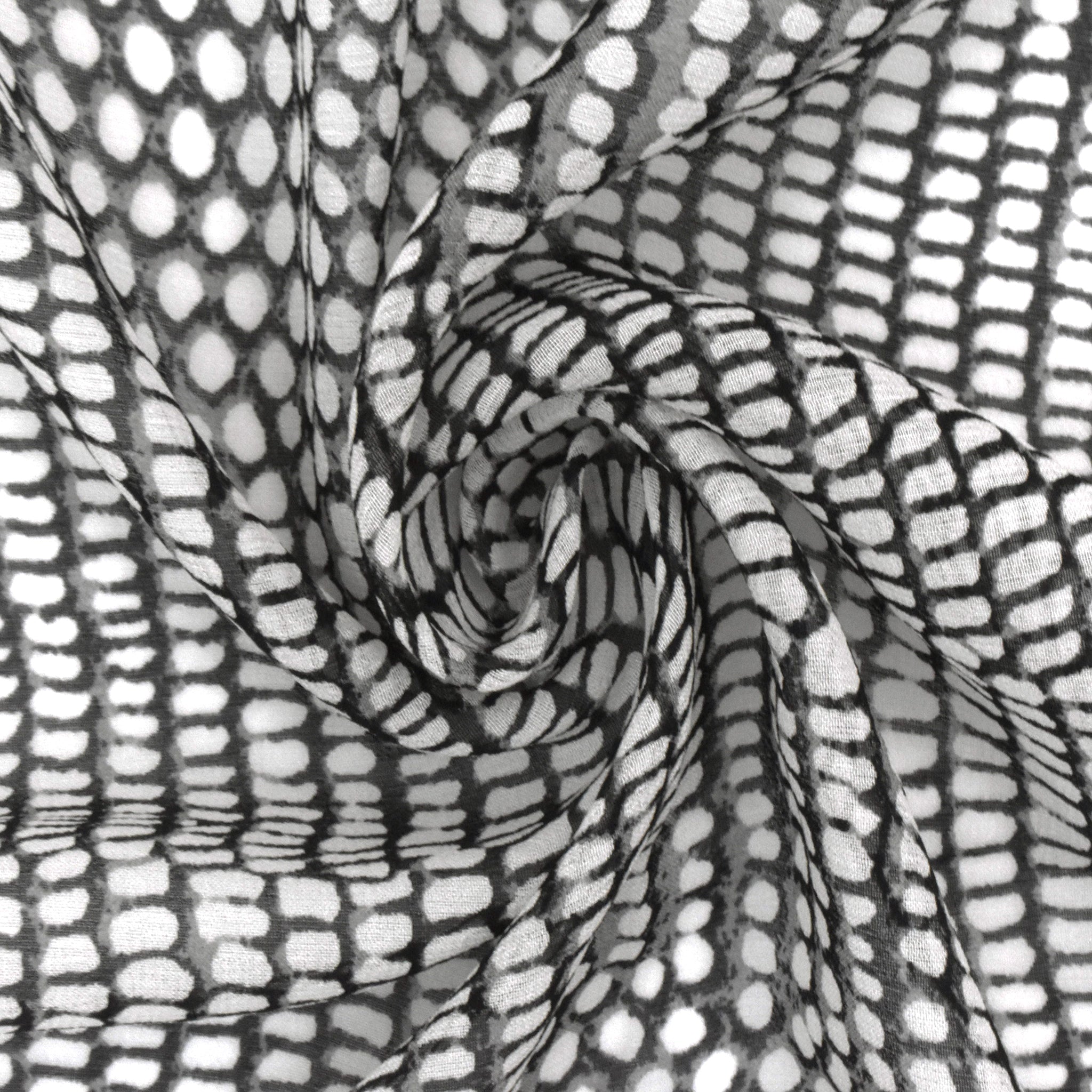 Black-White Reptile Printed Silk Chiffon Fabric