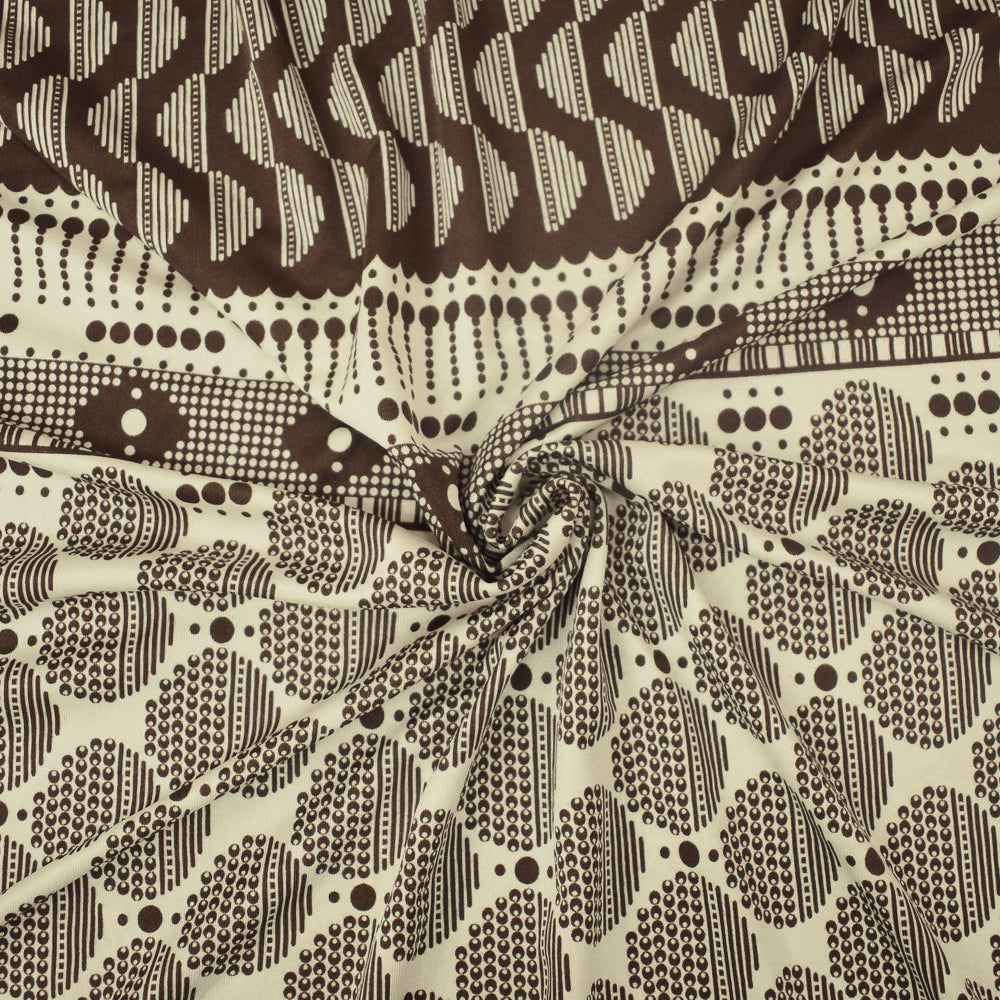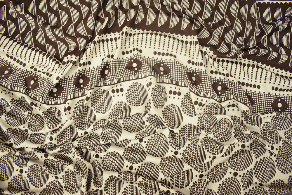 Brown-Ivory Dot Striped Pattern Printed Stretch Silk Jersey Knit Fabric