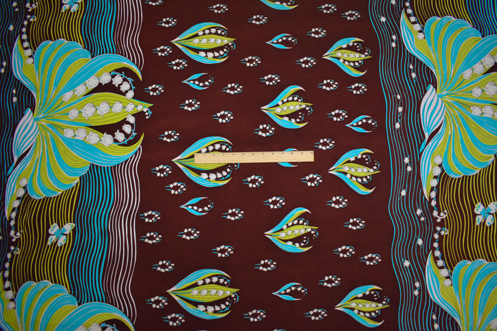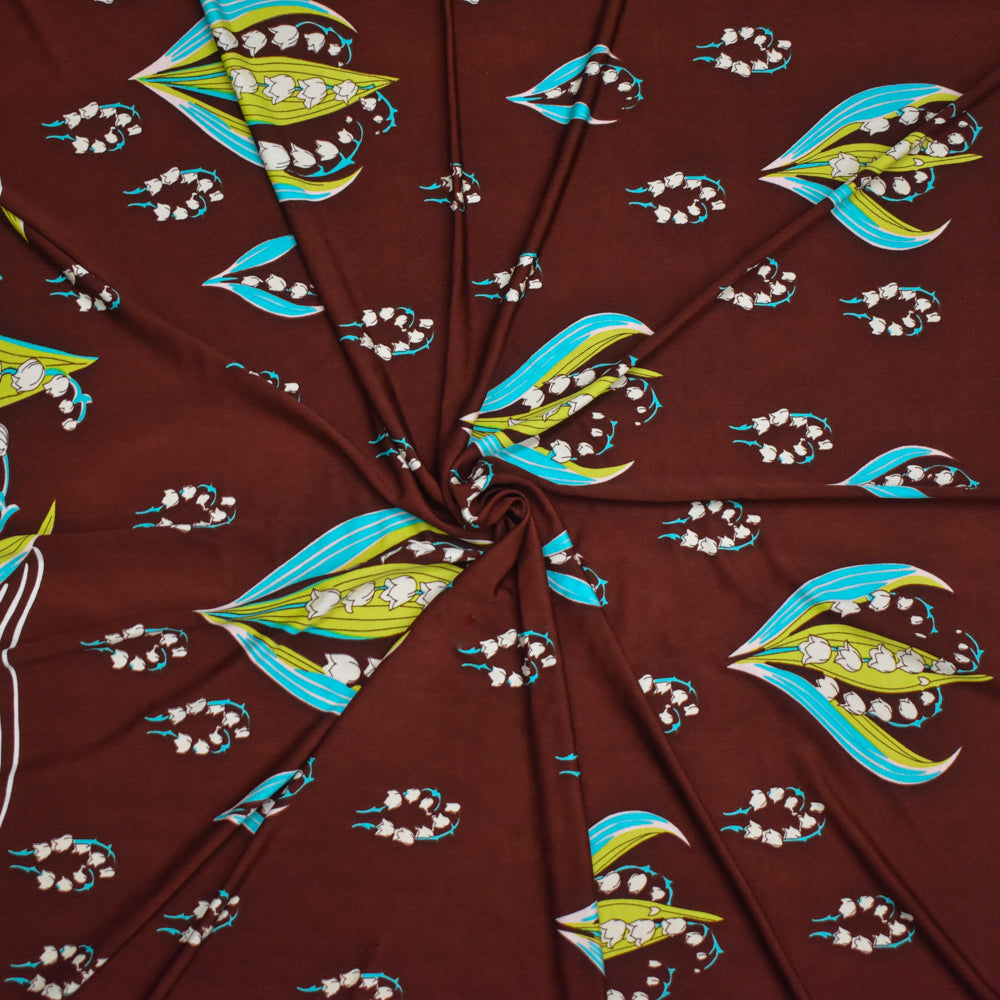 Brown-Lime-Multi Floral Wave Printed Stretch Silk Jersey Knit Fabric
