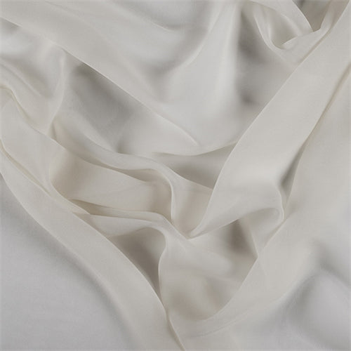 Elegant and Sheer with a slightly rough feel to it. It is lightweight, but strong. Chiffon is a flat crepe textured silk with a dull, soft finish.