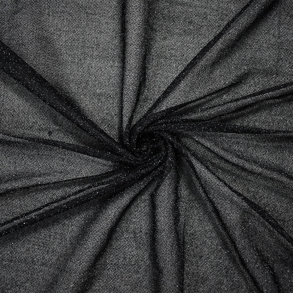 2 1/2 YD PC-Black Nylon Metallic Sparkle Mesh Knit Fabric