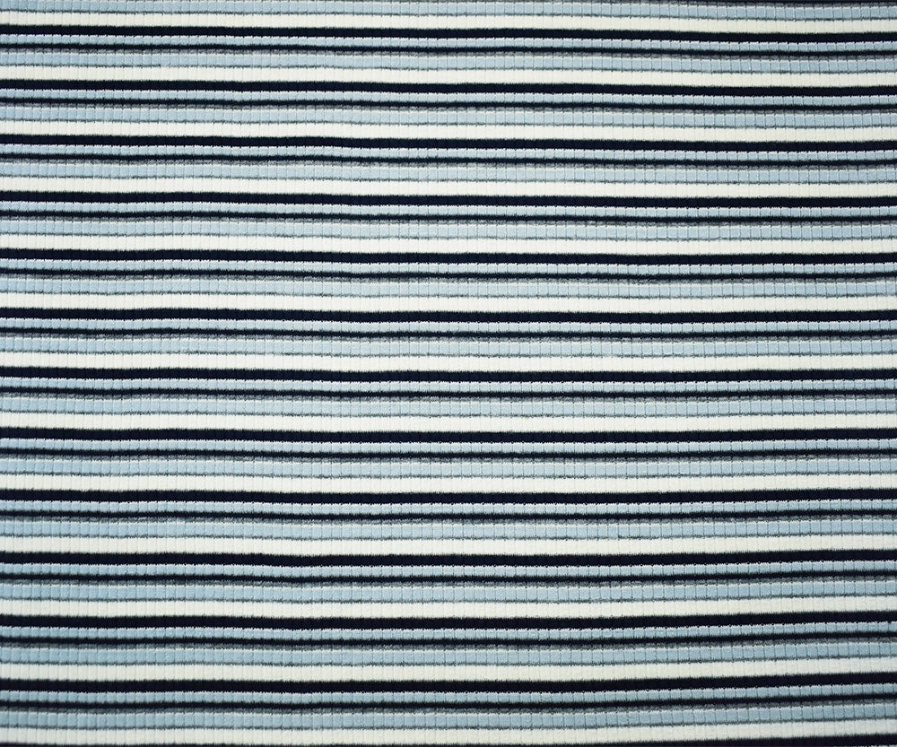 3 YD PC-Blue-White-Gray Cotton Stretch Spandex Horizontal Stripe Rib Knit Fabric