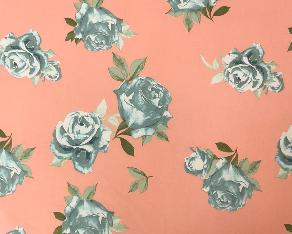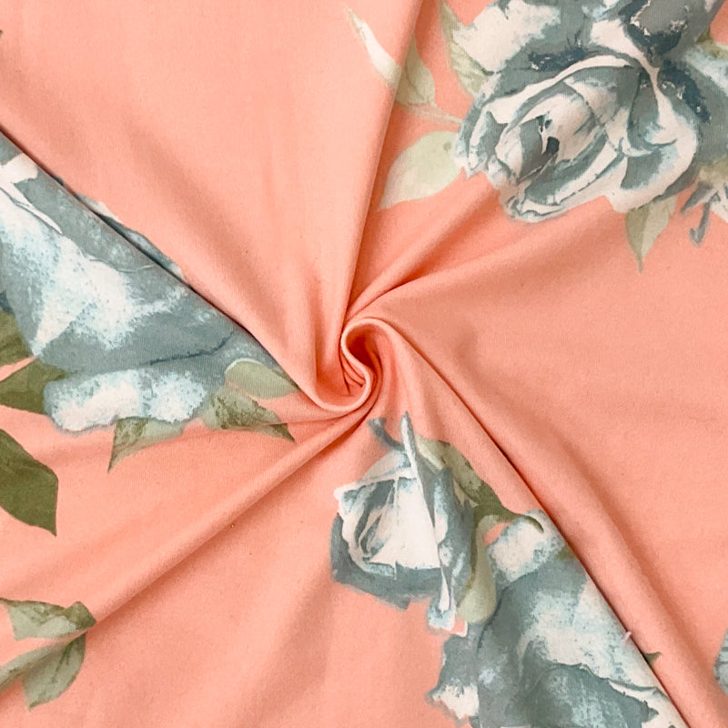 -Poly Spandex Stretch Floral Print Double Brush Jersey Knit Fabric