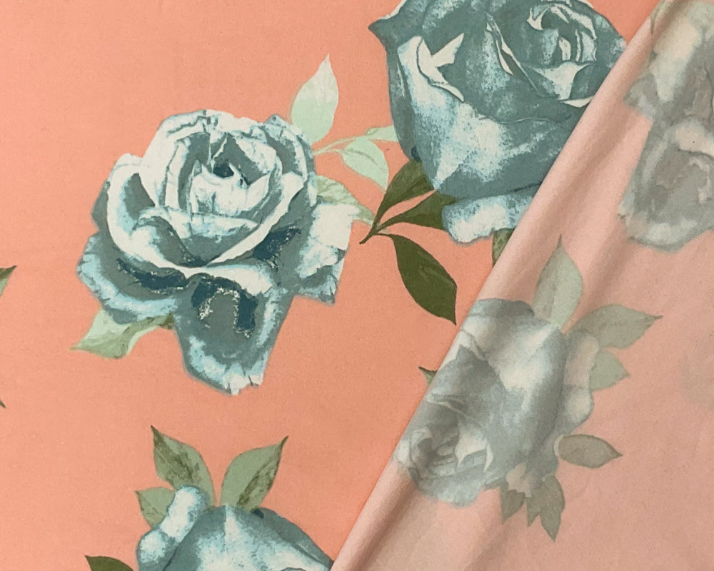Coral Orange Poly Stretch Floral Print DB Jersey Knit Fabric