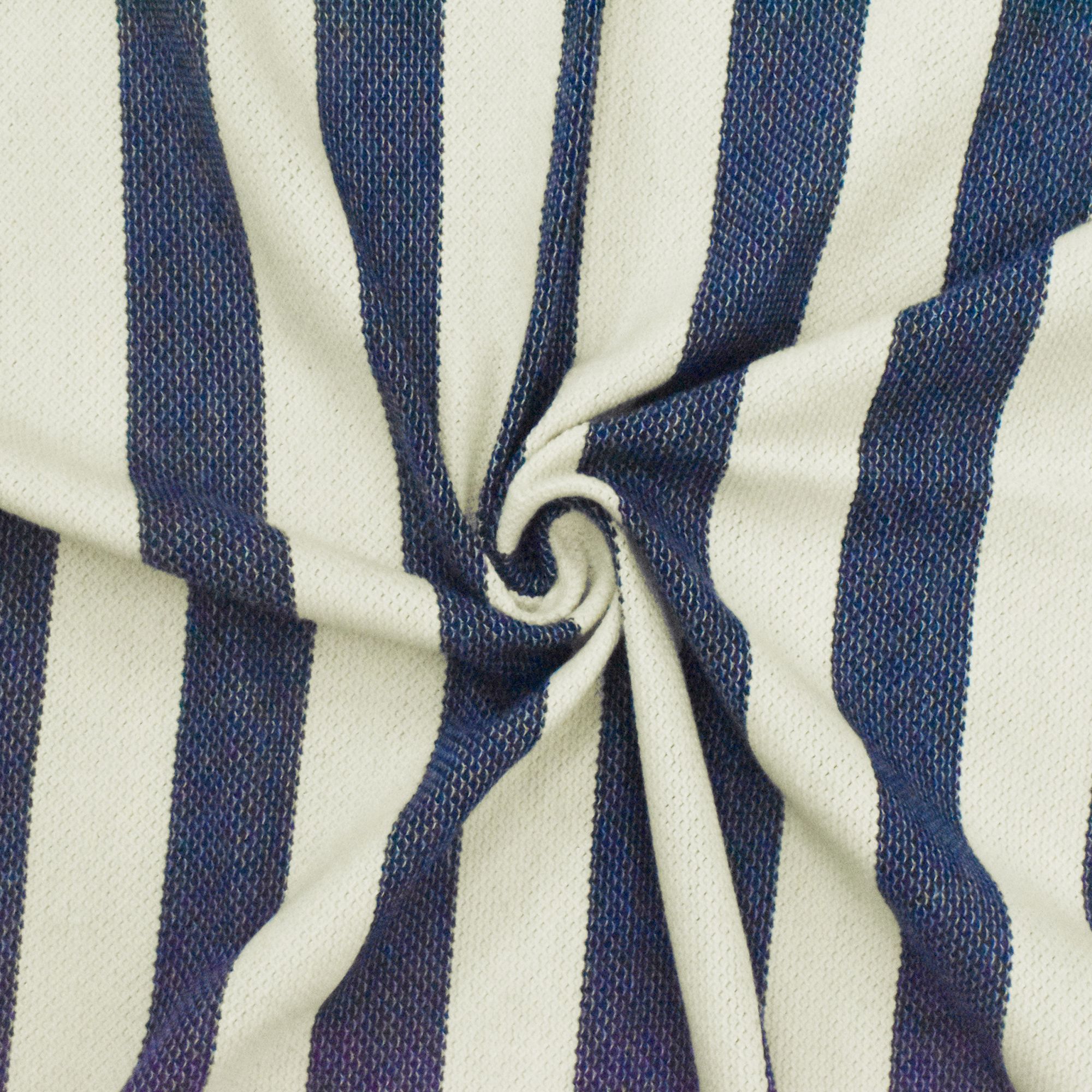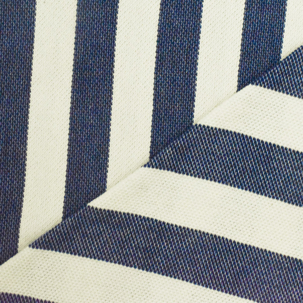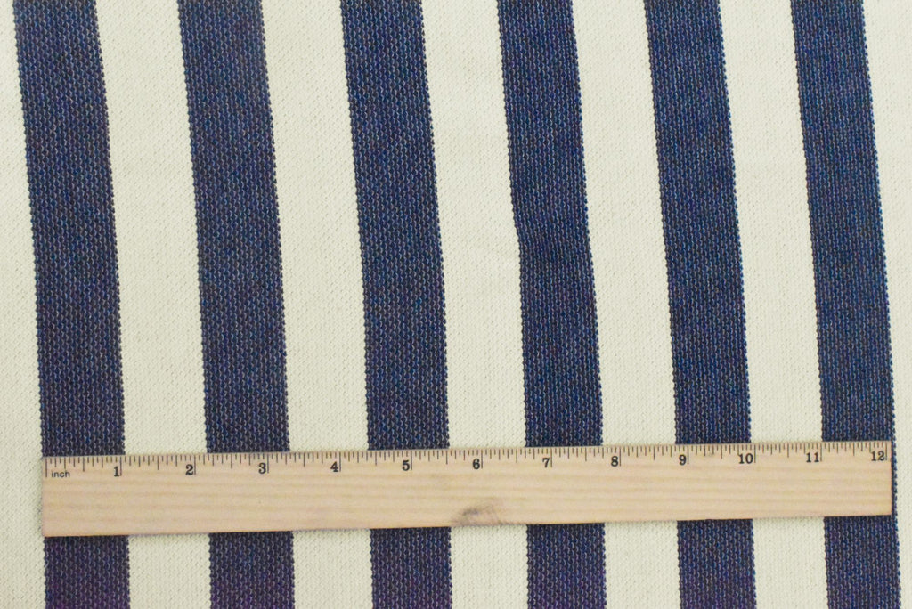 Ivory-Navy Blue Striped Pattern Pique Knit Fabric