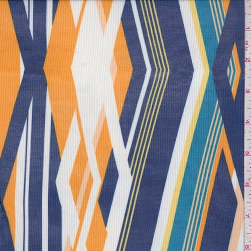 Navy/Orange Multi Stripe Diamond Power Mesh Fabric
