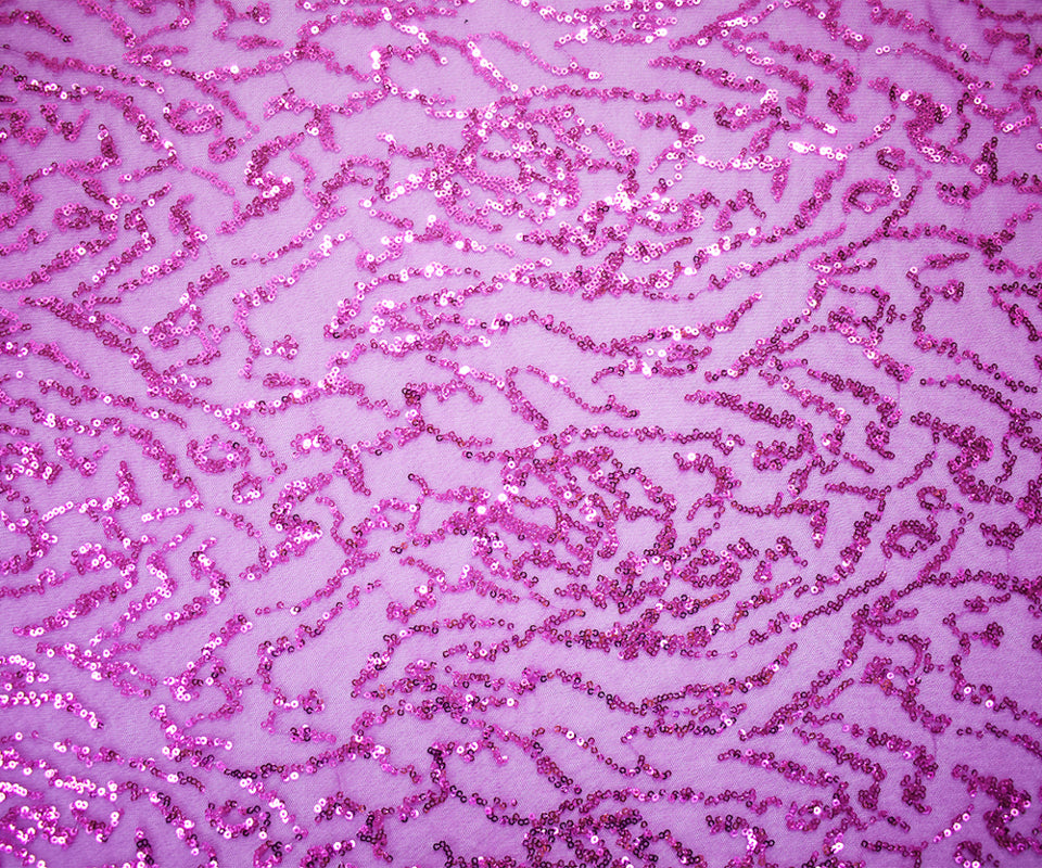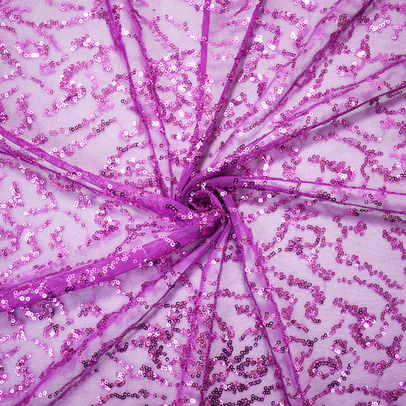 Purple Polyester Abstract Sequined Mesh Tulle Fabric
