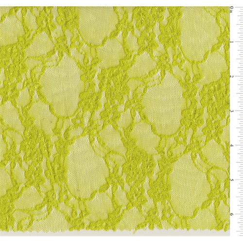 Neon green floral stretch lace fabric. This light weight sheer lace fabric has ample 4 way stretch and recovery.