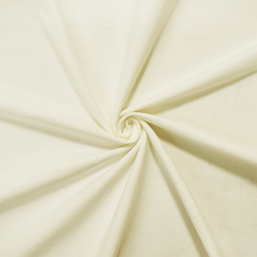 -Top quality medium weight cotton spandex knit in a solid off white ivory color. The perfect knit fabric staple! True medium to heavy 12 oz weight with a soft hand, good 4 way stretch, and nice recovery.
