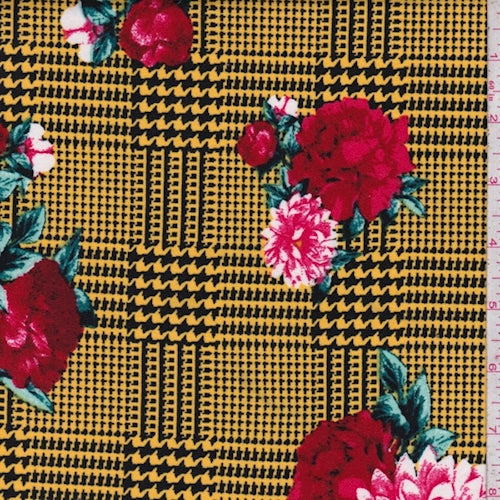 Yellow/Red Glen Plaid Floral Double Brushed Jersey Knit Fabric