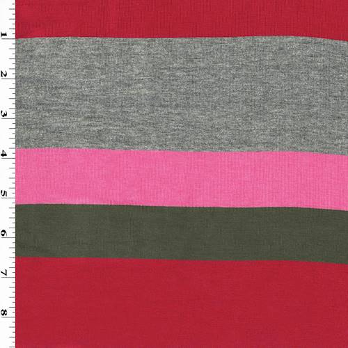 2 1/2 YD PC-Olive/Red/Multi Stripe Jersey Knit Fabric