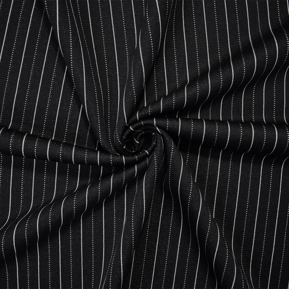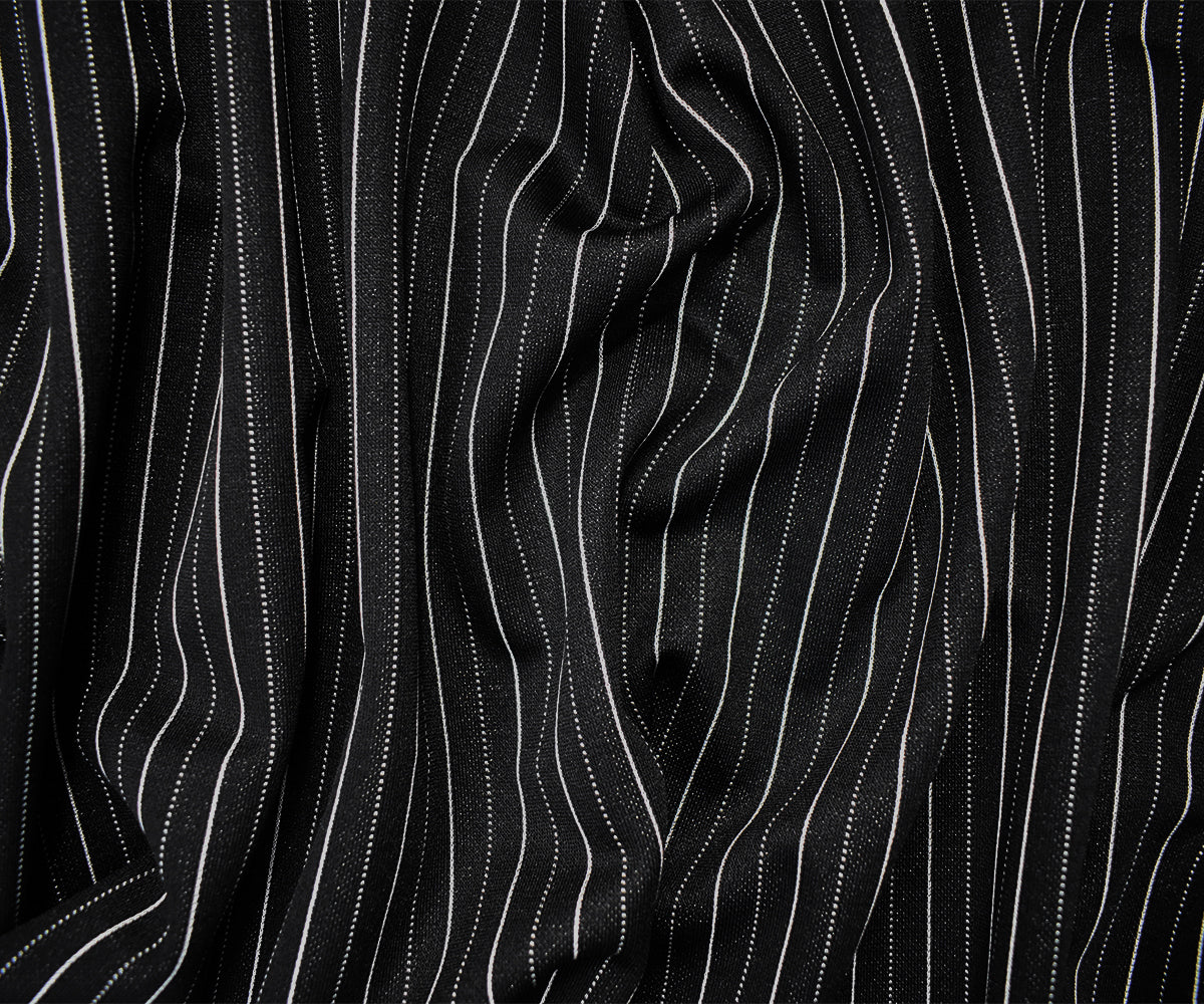 Black-White Poly Wool Spandex Stretch Stripe Double Knit Fabric