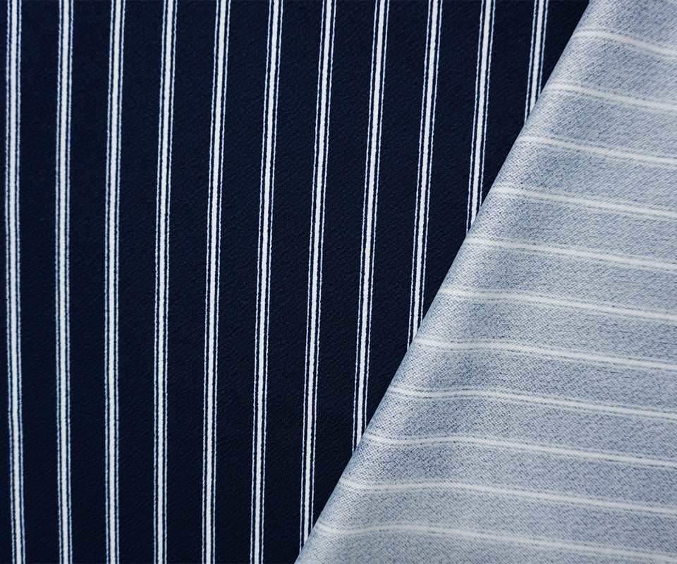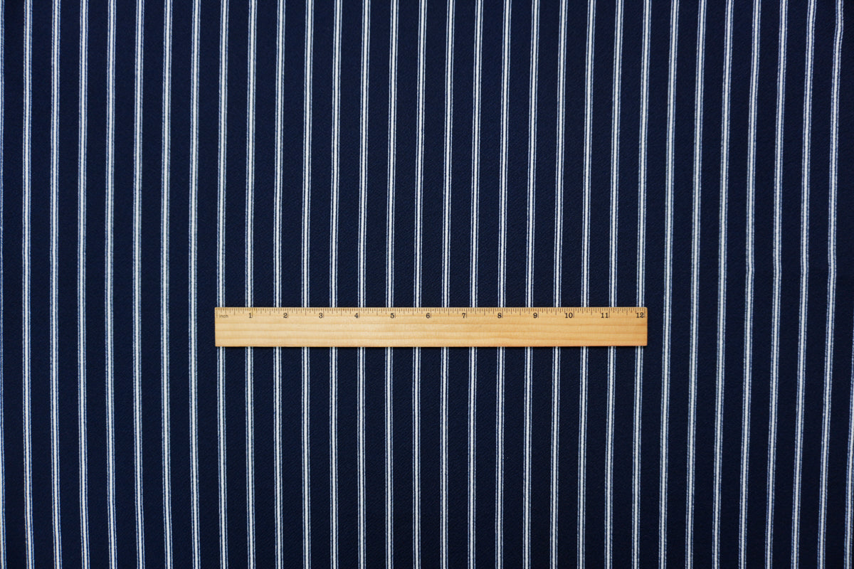 Deep Navy-White Poly Stripe Print Liverpool Double Knit Fabric