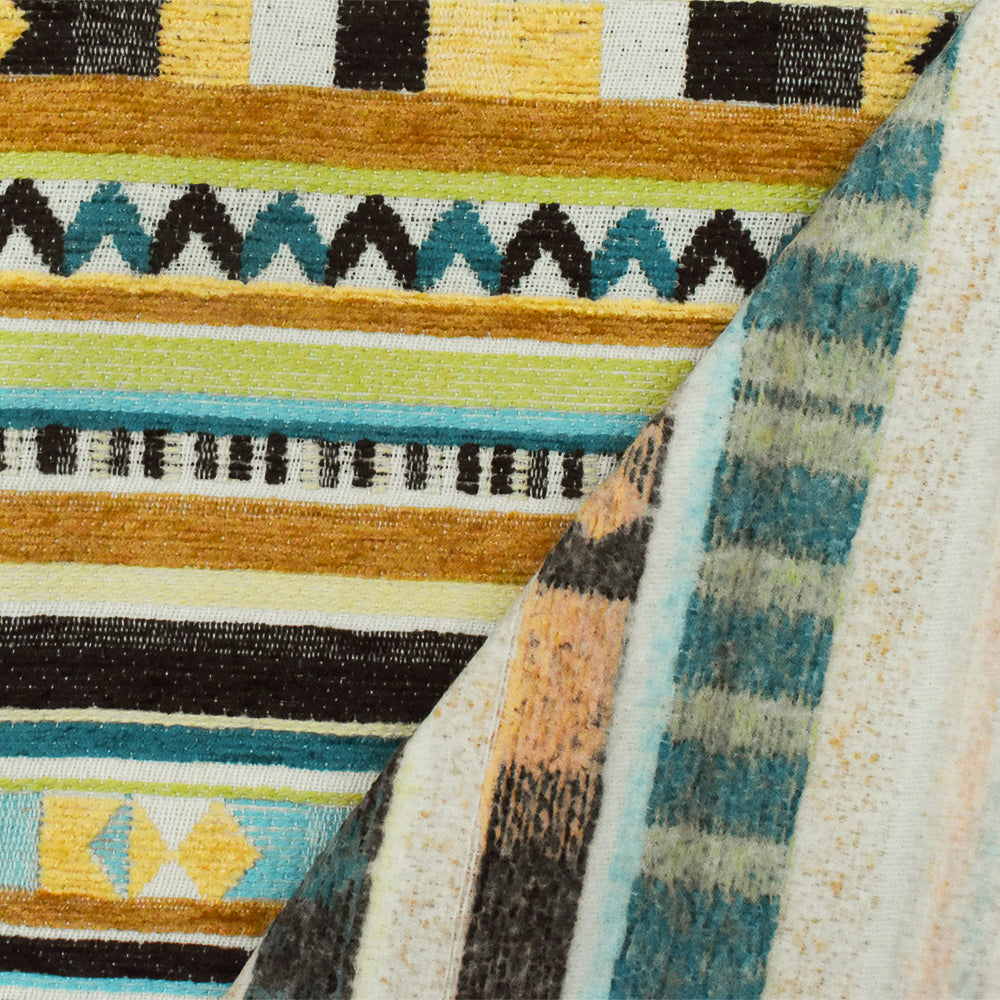 -100% polyester Aztec inspired stripe jacquard chenille woven home decorating fabric, polycoated back