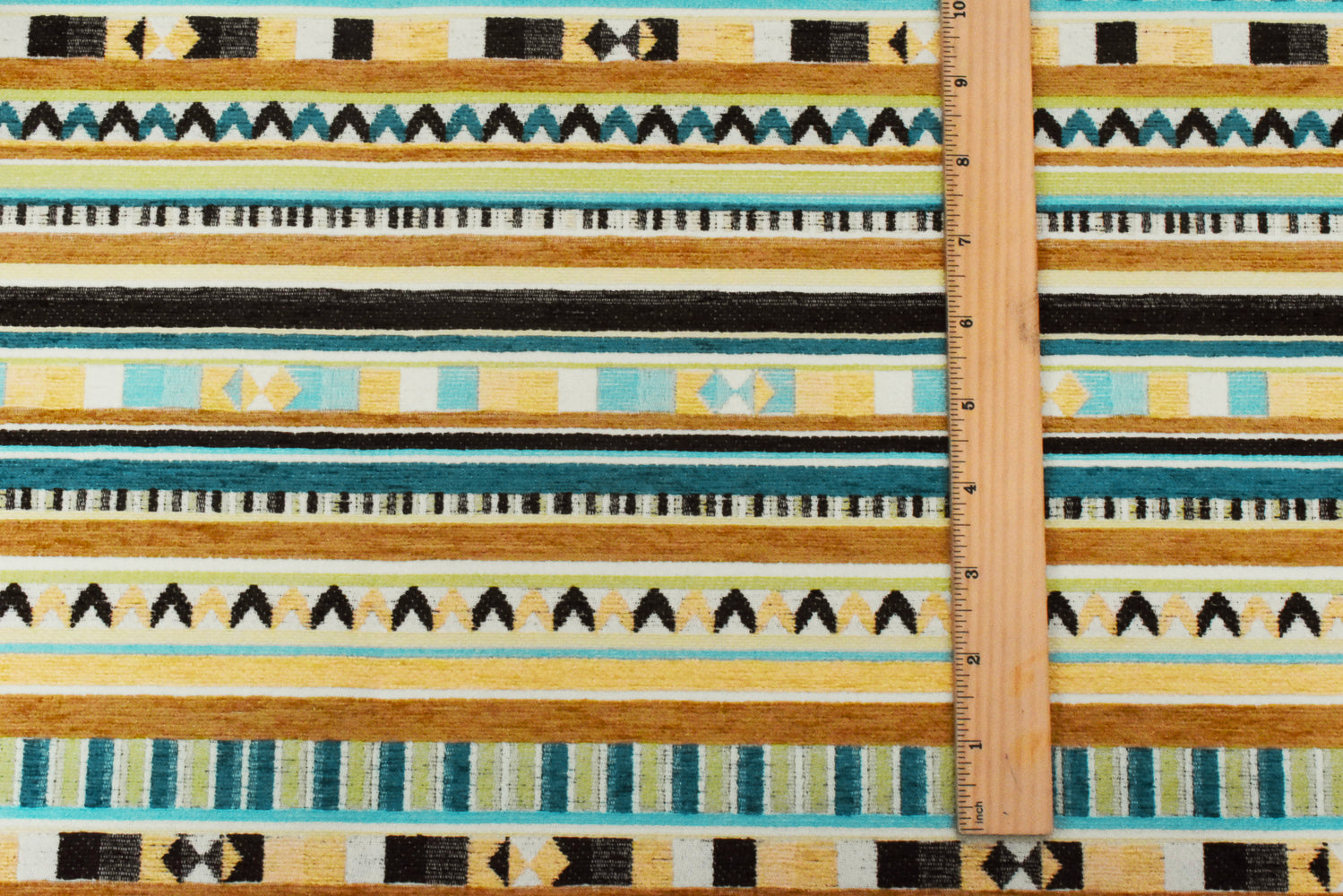Lime-Multi Aztec Stripe Jacquard Poly Chenille Home Decorating Fabric