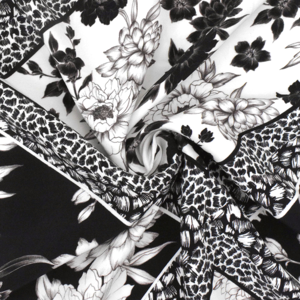 Black-White-Gray Famous Designer Floral Tile Printed Faille Woven Fabric
