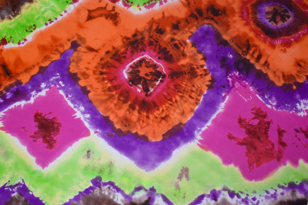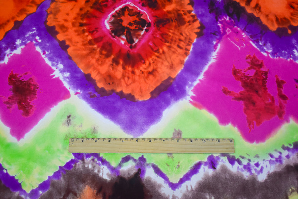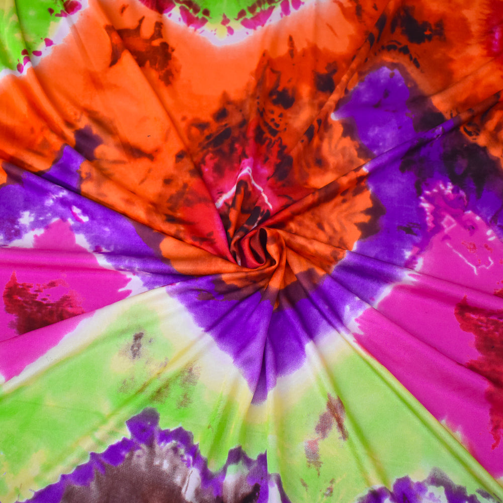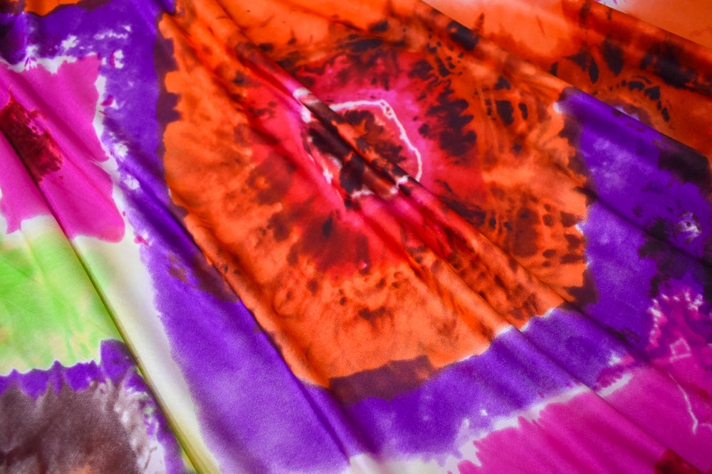 Purple-Brown-Multi Tie Dye Printed Stretch Silk Jersey Knit Fabric