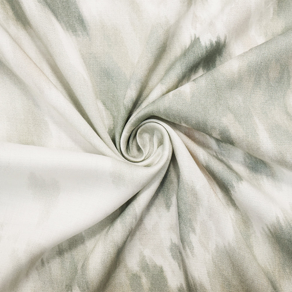 Gray-Beige-Off-White Rayon Abstract Watercolor Printed Twill Woven Fabric