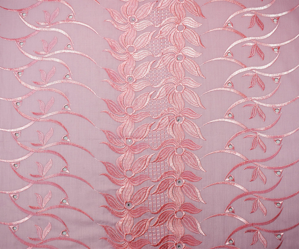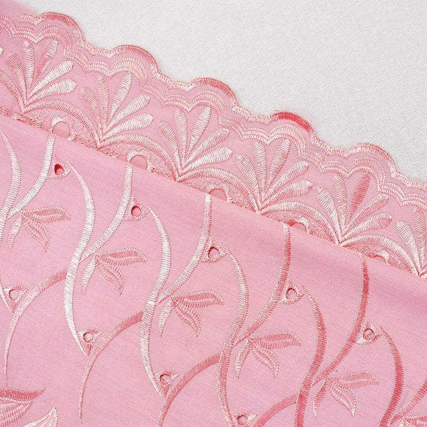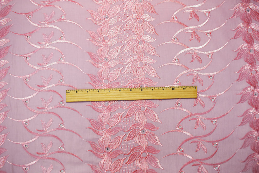 1 3/4 YD PC-Pink Poly-Cotton Embroidered Floral Scallop Rhinestone Woven Fabric