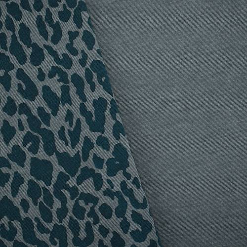 3 YD PC-Deep Ocean Green/Gray Cheetah Printed Double Knit Fabric