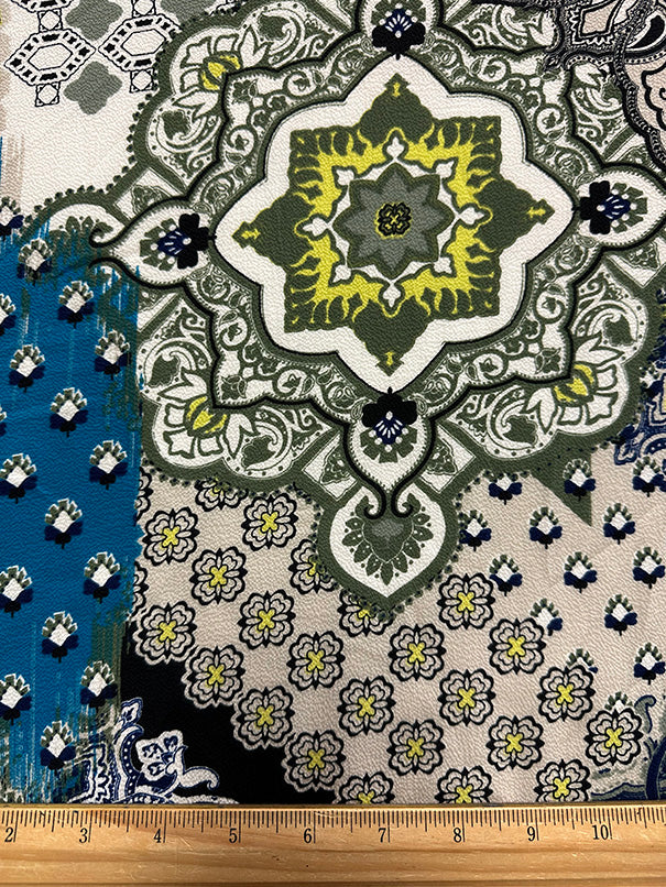 4 1/2 YD PC-Beige Multi Medallion Print High Crepe Fabric