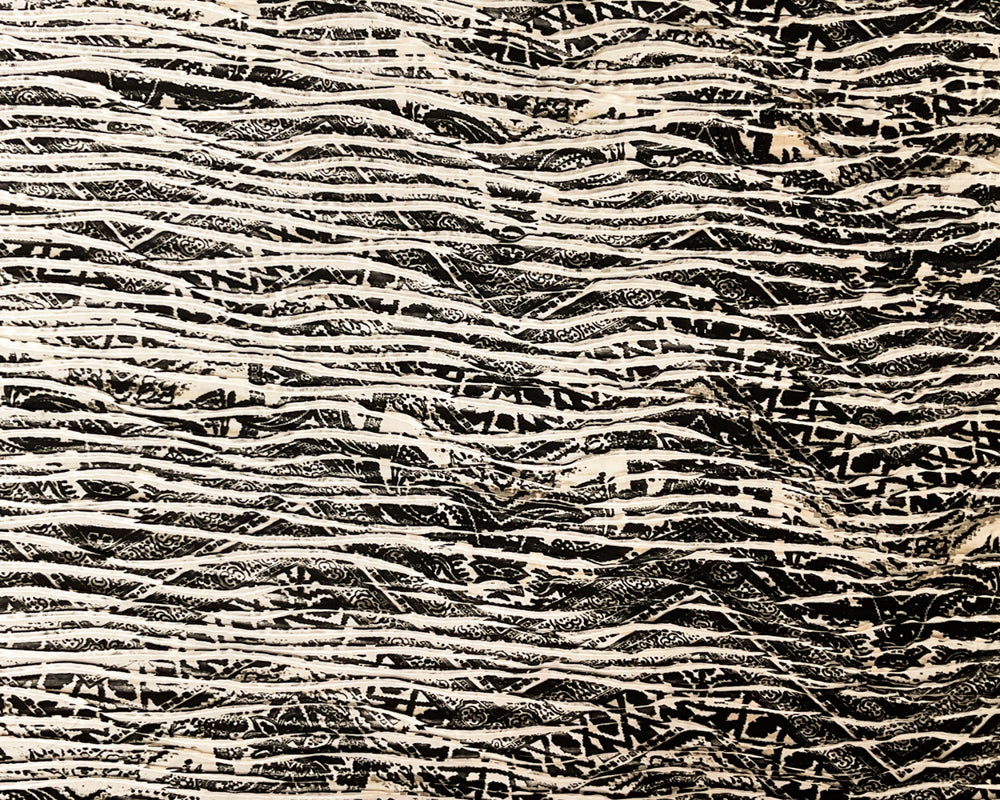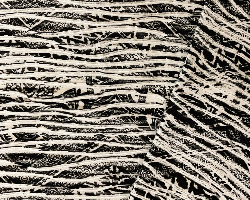 Black-Gray-Multi Poly Chevron Printed Knife Pleat Knit Fabric