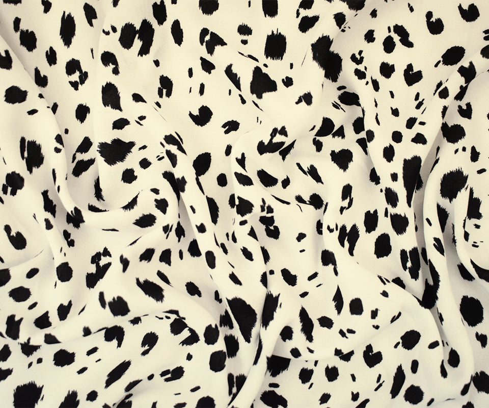 Black-White Famous Designer Spots Print Dobby Crepe Woven Fabric