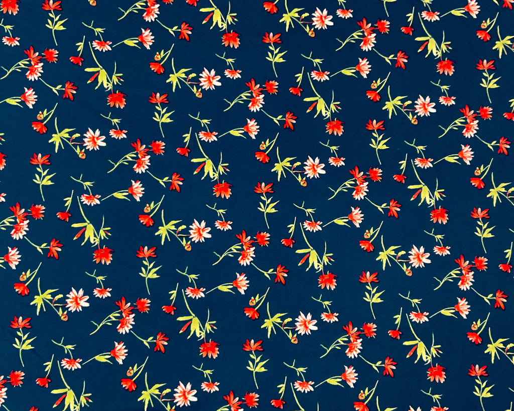 -Blue-Multi Poly Spandex Stretch Floral Print Double Brush Jersey Knit Fabric