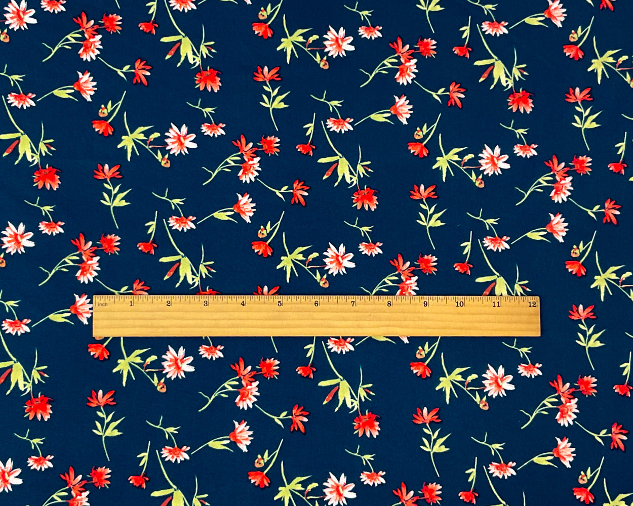 Blue-Multi Poly Spandex Stretch Floral Print DB Jersey Knit Fabric