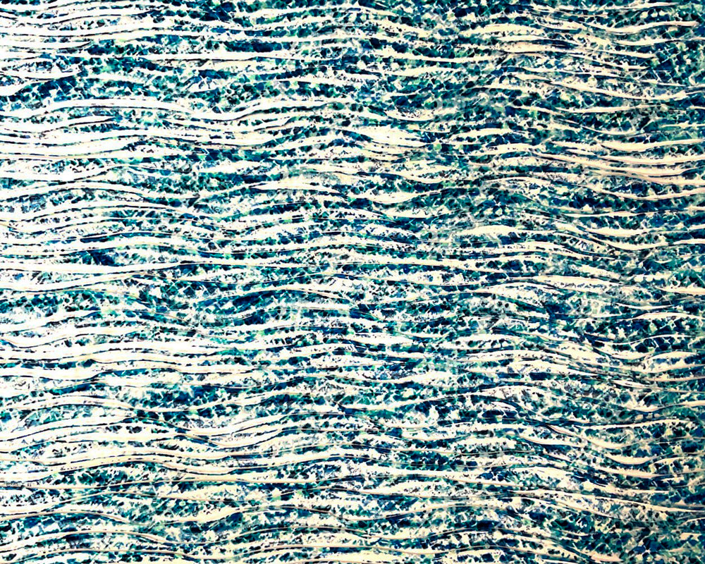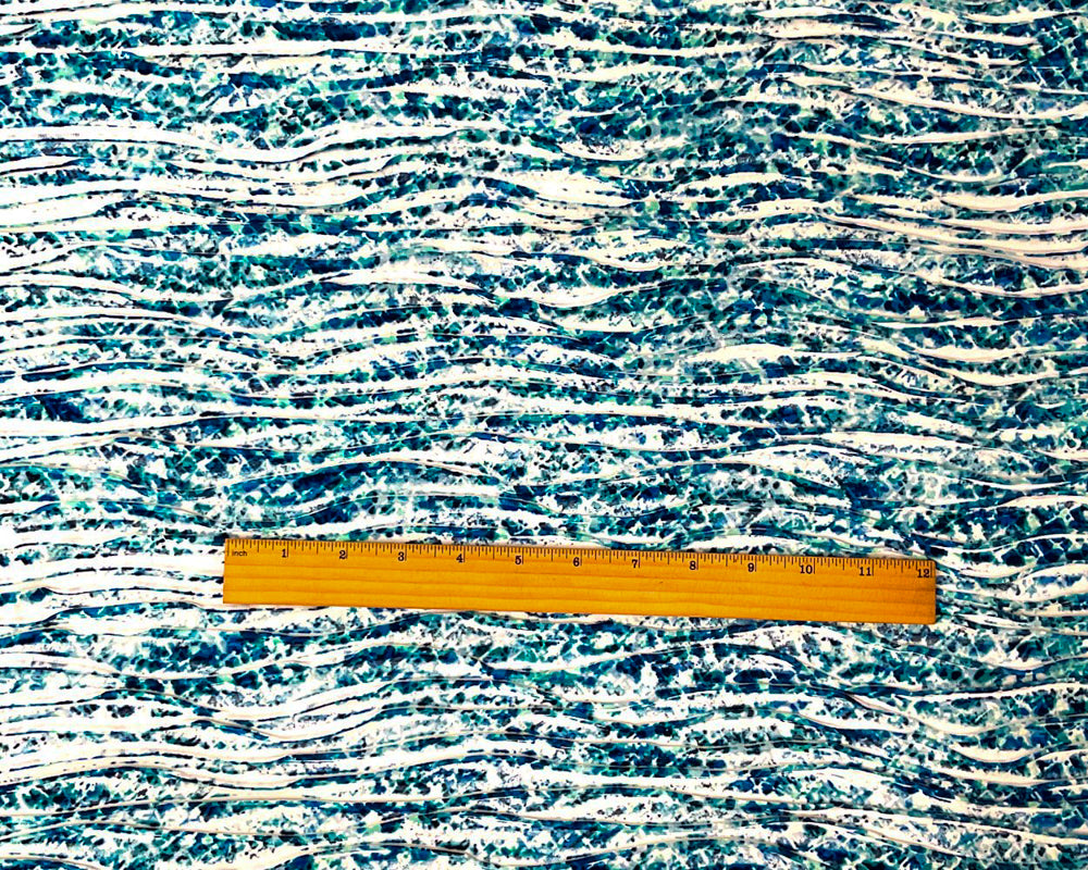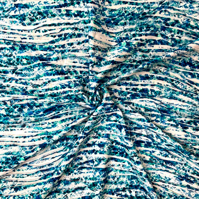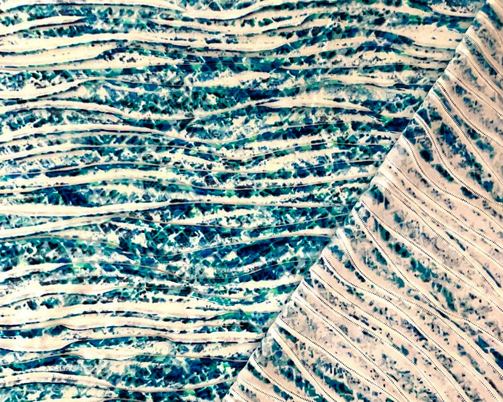 Blue-Turquoise-White Poly Tie Dye Printed Knife Pleat Knit Fabric
