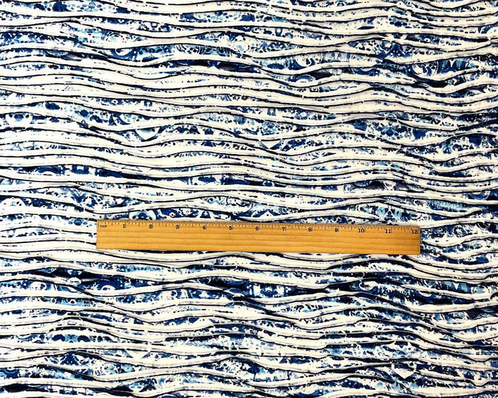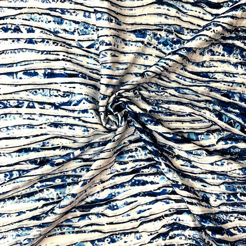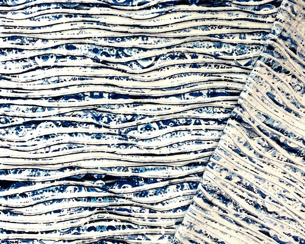 Blue-White Poly Baroque Printed Knife Pleat Knit Fabric