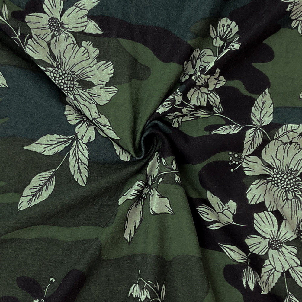 Green-Multi Poly Spandex Stretch Camo Floral Print DB Jersey Knit Fabric