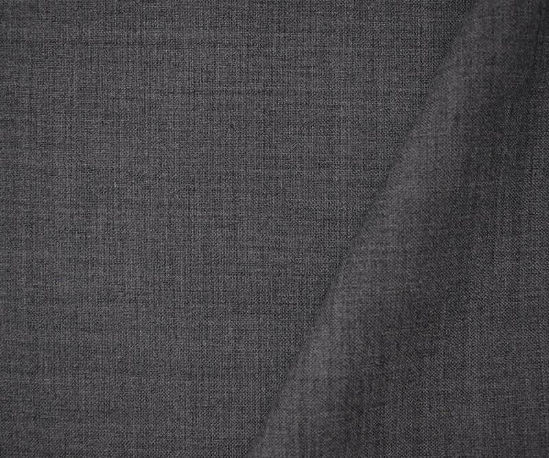 -Heather woven suiting with poly-wool blend for subtle tonal variation. Offers structured drape and wrinkle resistance for professional garments.