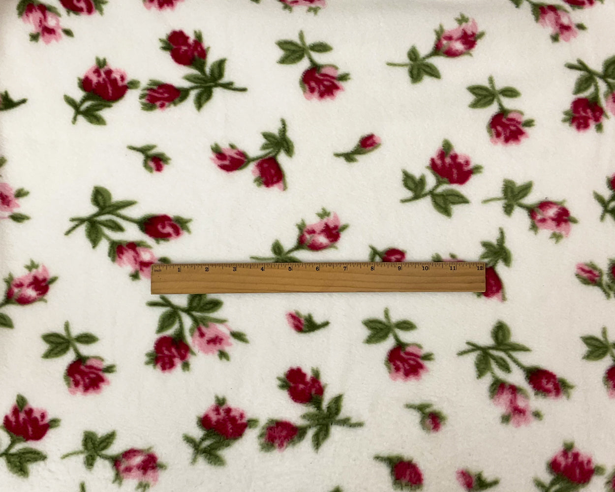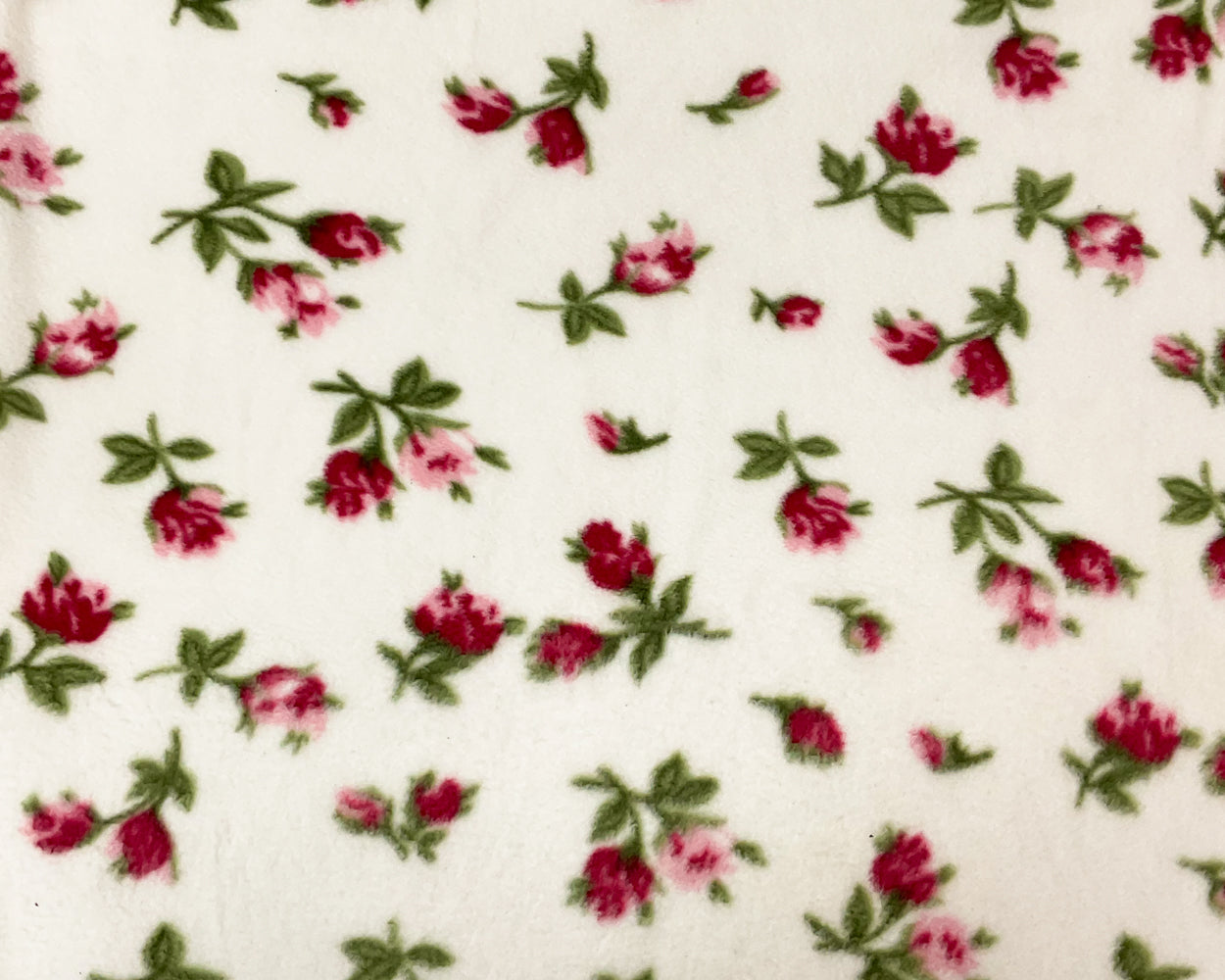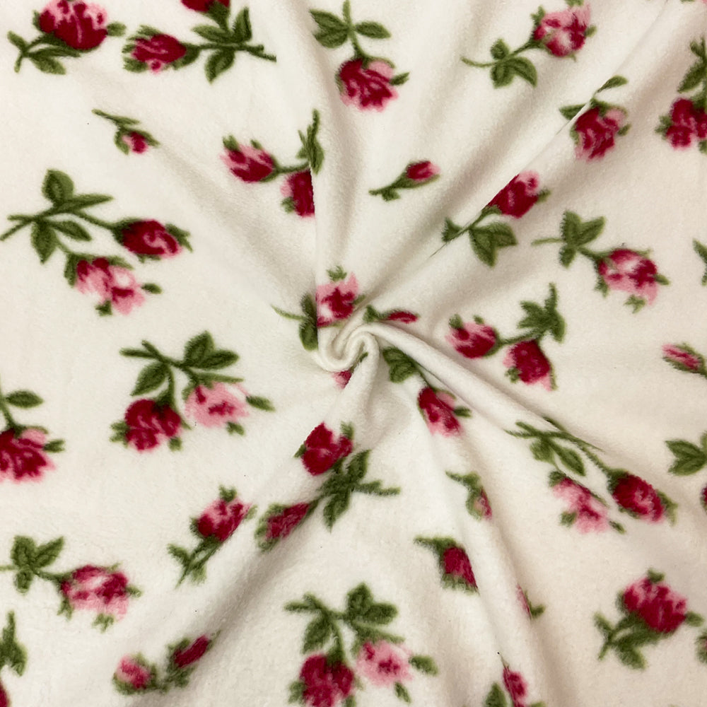 -325G/Y, Off-White-Red-Green Polyester Floral Printed Polar Fleece Knit Fabric