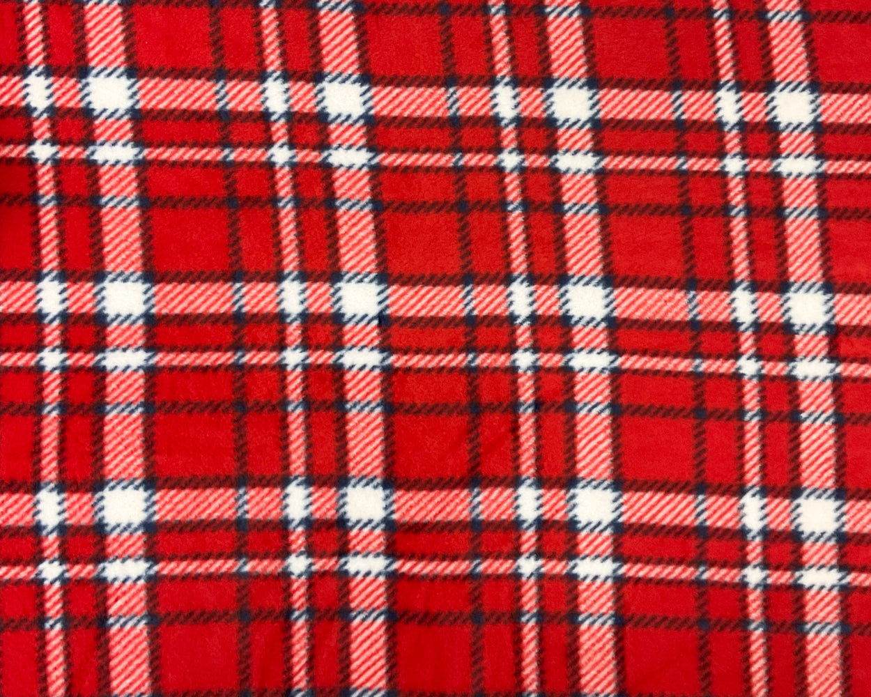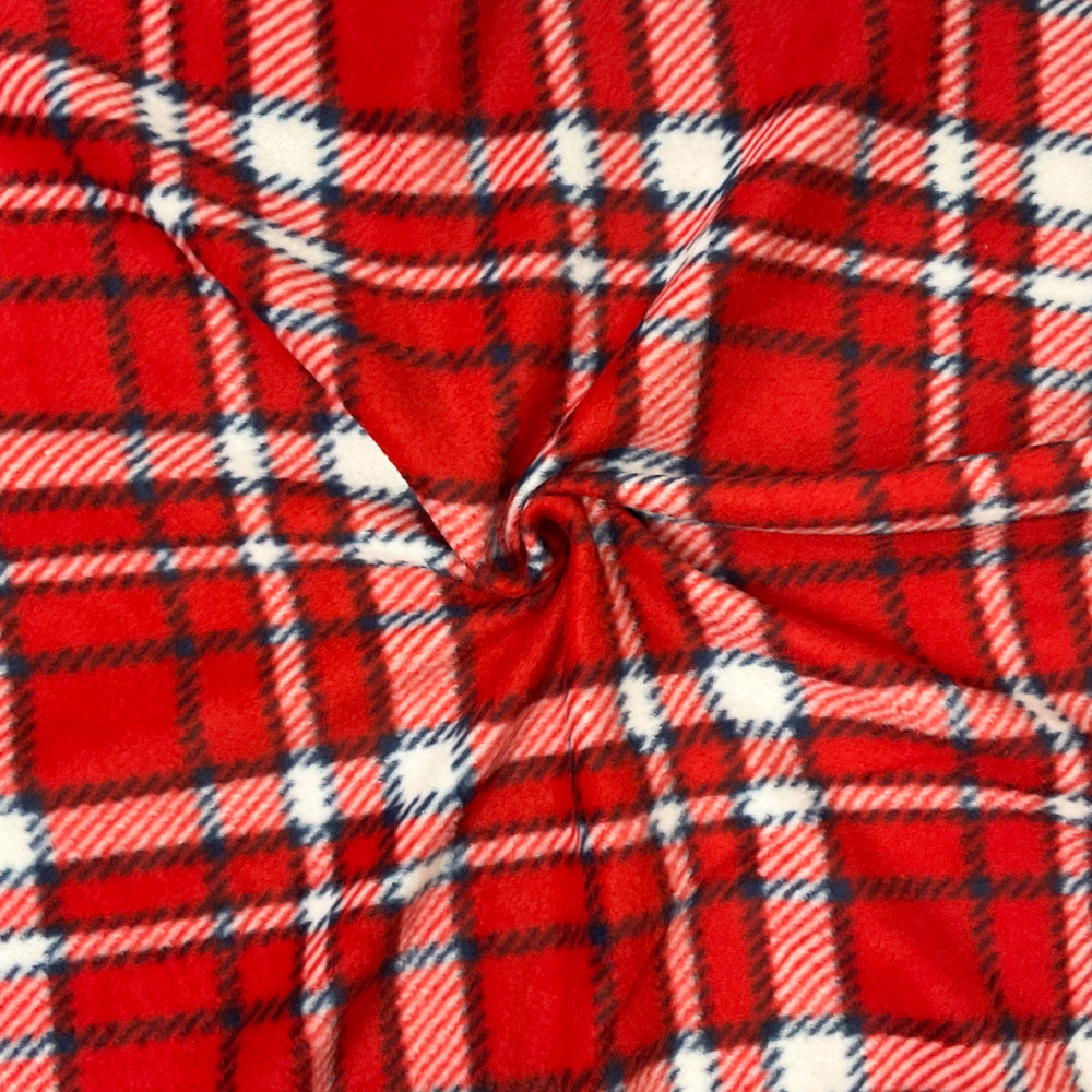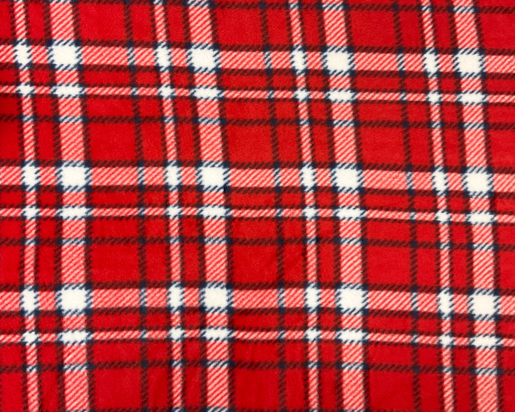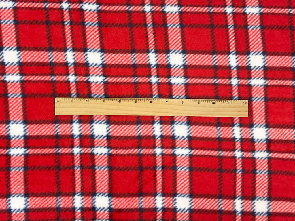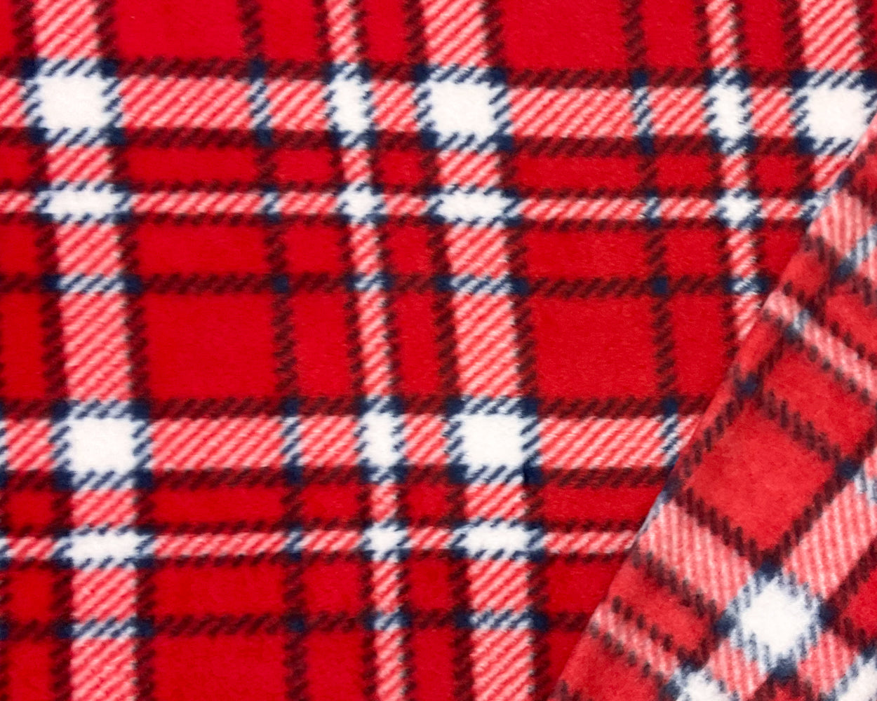 Red-White-Blue Polyester Plaid Printed Polar Fleece Knit Fabric