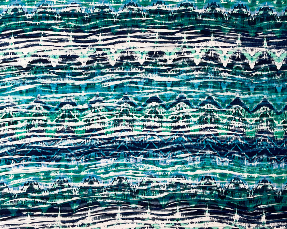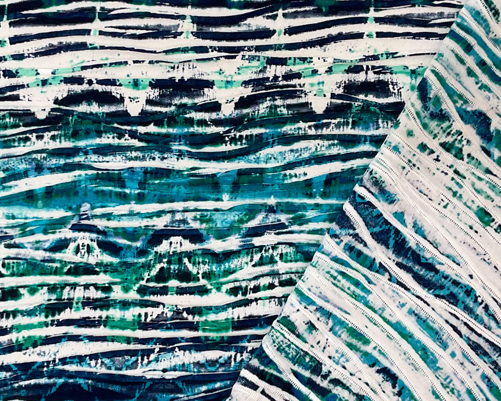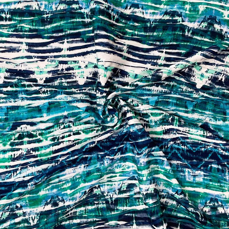 Turquoise-Multi Poly Tie Dye Printed Knife Pleat Knit Fabric