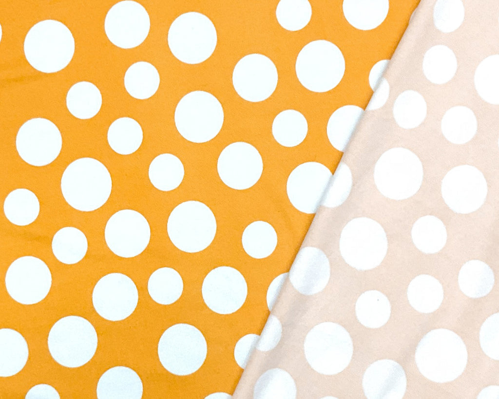 Yellow-White Poly Spandex Stretch Dot Print DB Jersey Knit Fabric