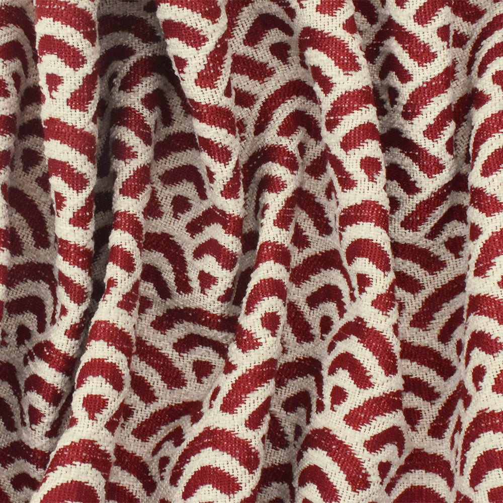 Red-Ivory Scallop Scale Poly Acrylic Chenille Damask Woven Home Decorating Fabric
