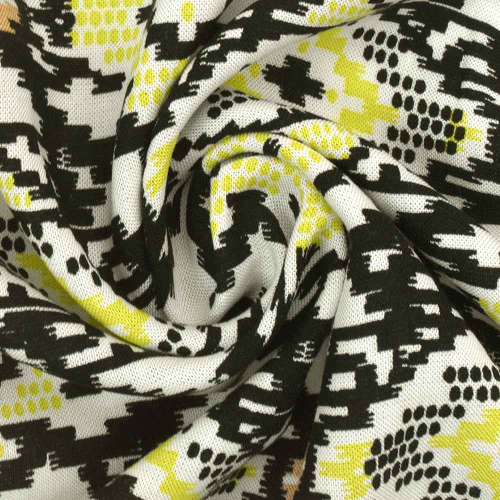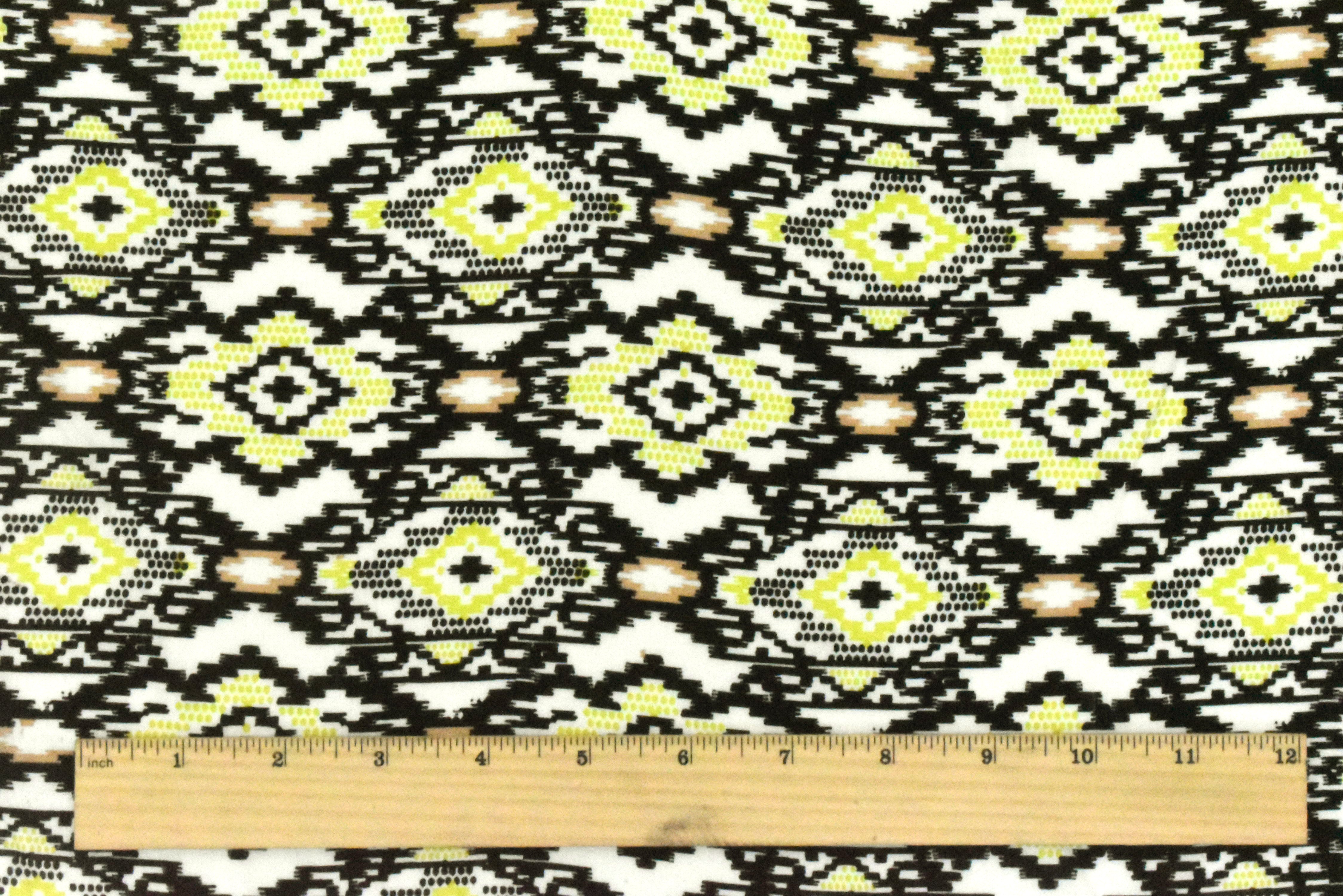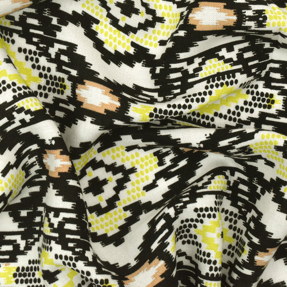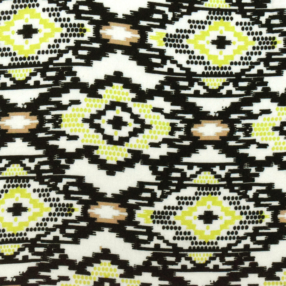 Black-Chartreuse-Multi Aztec Printed Challis Fabric