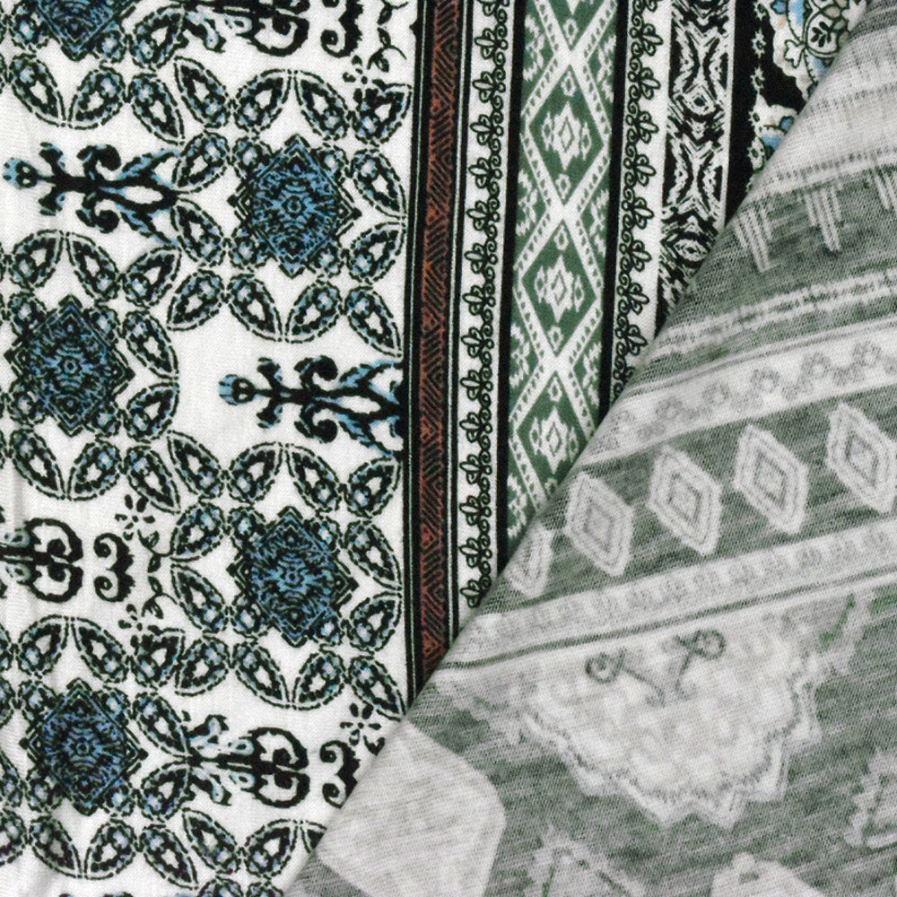 Black-Green-Multi Moroccan Stripe Printed Rayon Stretch Jersey Knit Fabric