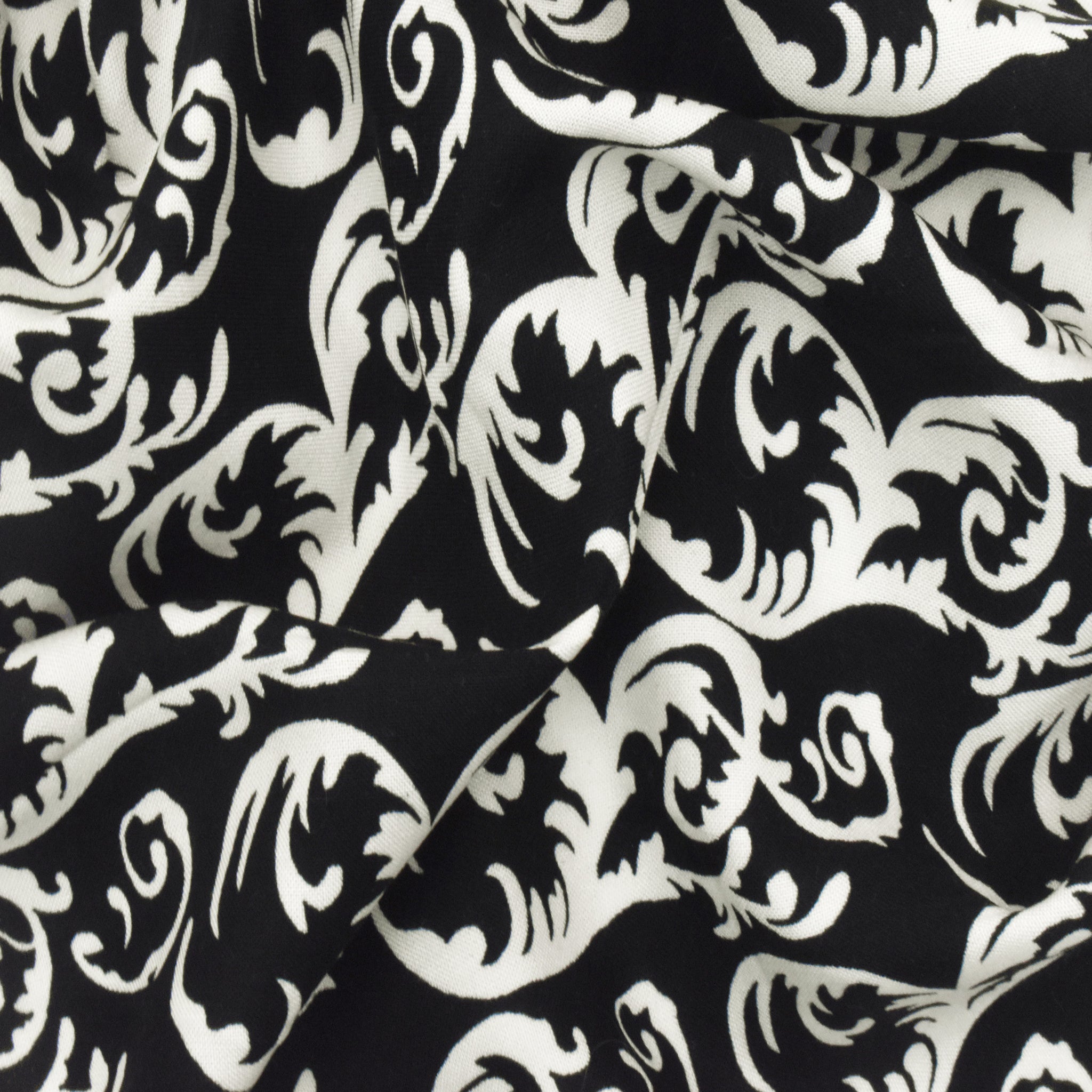 Black-Mist Ivory Cotton Scroll Abstract Printed Stretch Woven Fabric