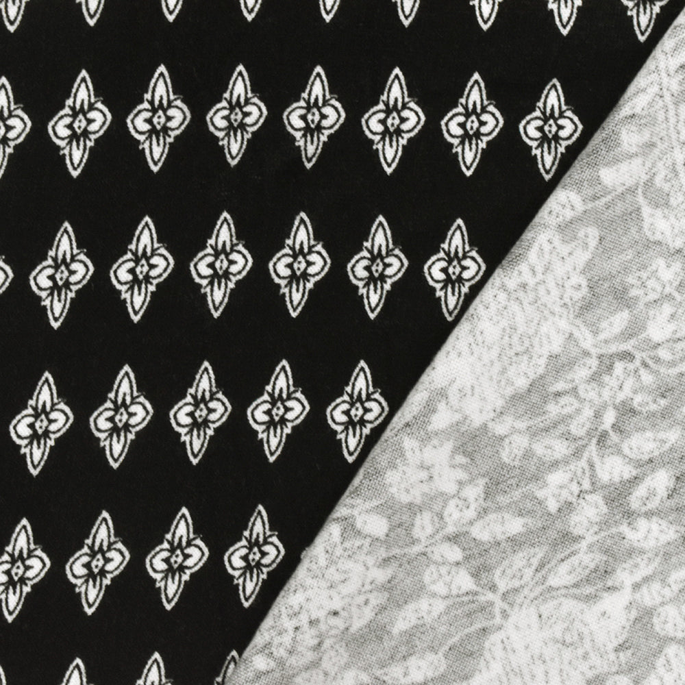 Black-White Floral Border Printed Rayon Stretch Jersey Knit Fabric