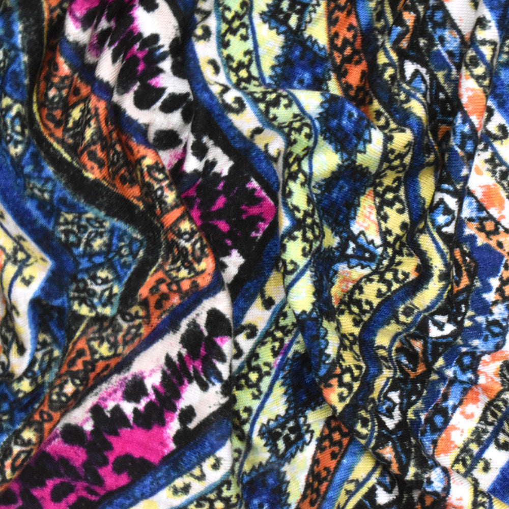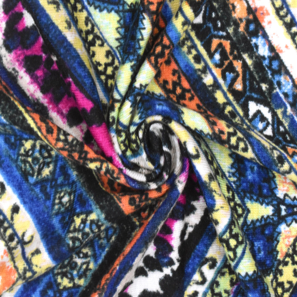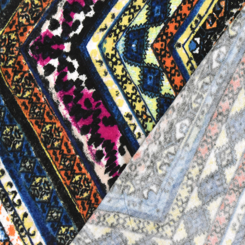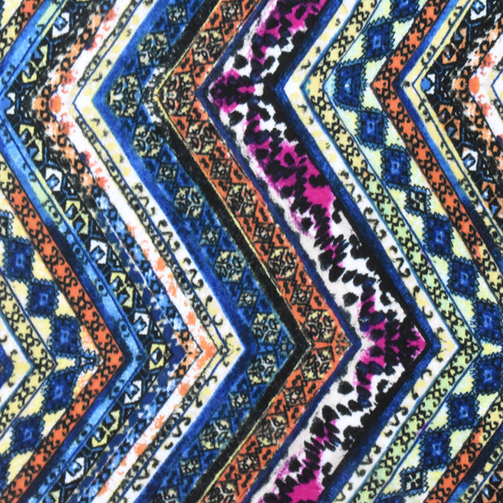 -Chevron with mixed patterns printed on a rayon jersey knit fabric