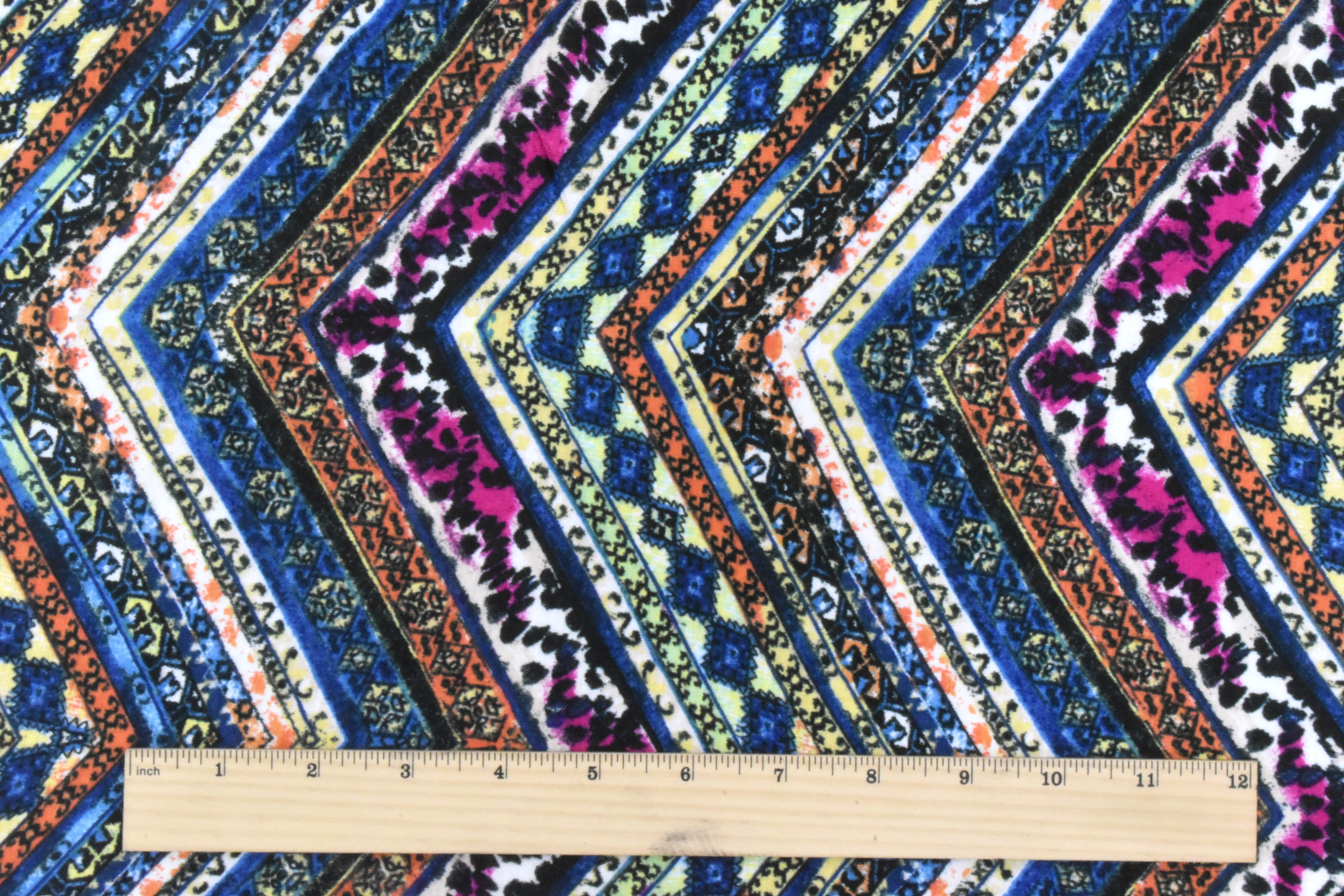 Blue-Multi Mixed Pattern Chevron Printed Rayon Stretch Jersey Knit Fabric